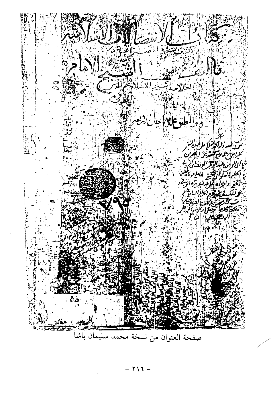 ( CS) صفحة العنوان من نسخة محمد سليمان باشا