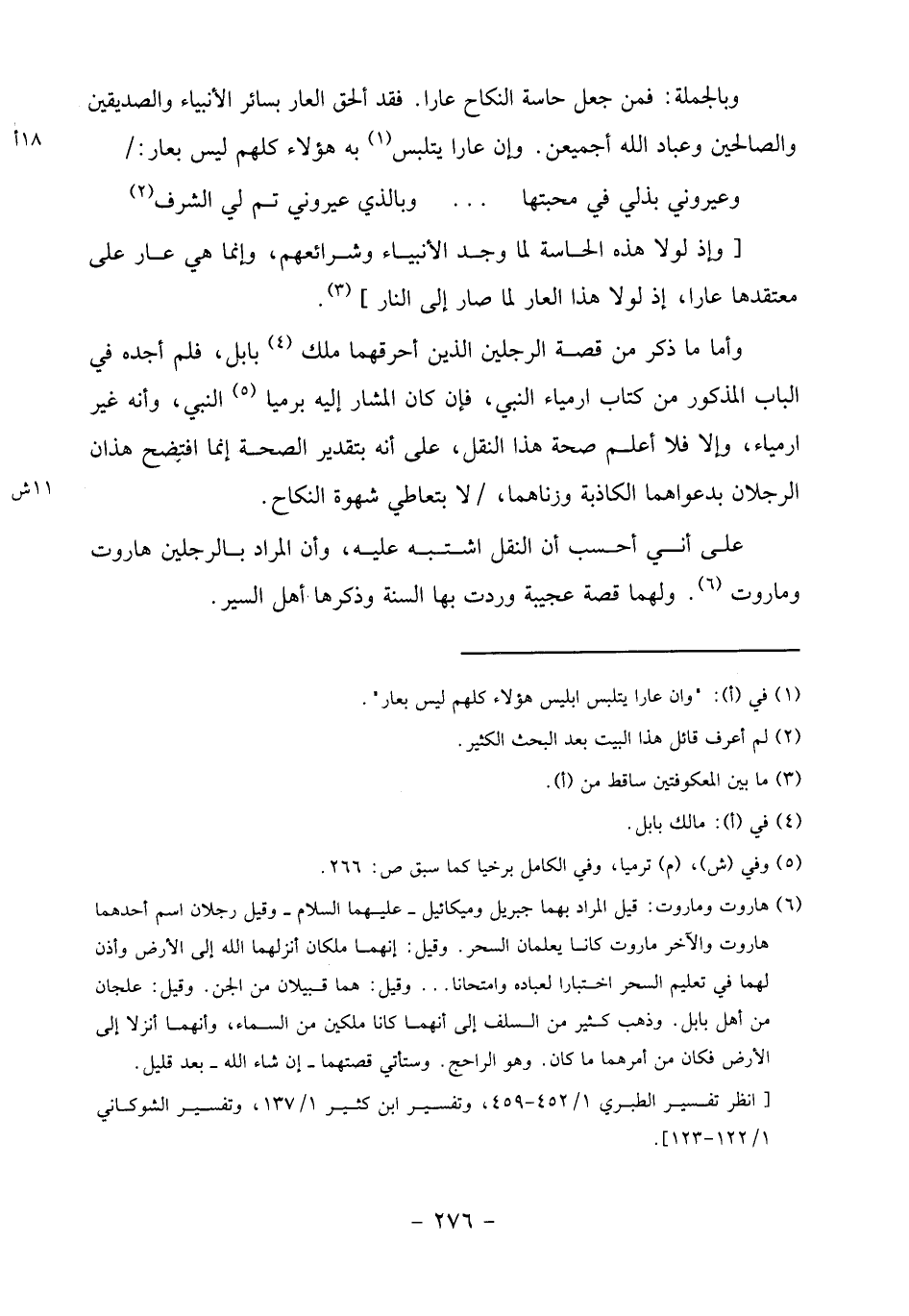 على أني أحسب أن النقل اشتبه عليه، وأن المراد بالرجلين هاروت وماروت «6». ولهما قصة عجيبة وردت بها السنة وذكرها أهل السير.