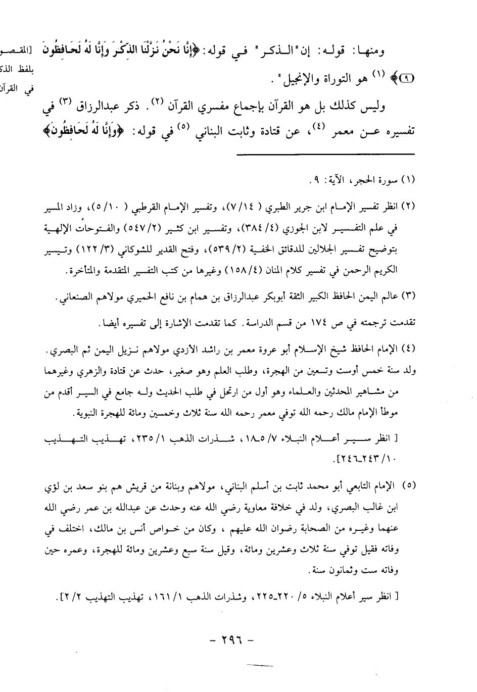 وليس كذلك بل هو القرآن بإجماع مفسري القرآن «2». ذكر عبد الرزاق «3» في تفسيره عن معمر «4»، عن قتادة وثابت البناني «5» في قوله: وإِنَّا لَهُ لَحافِظُونَ