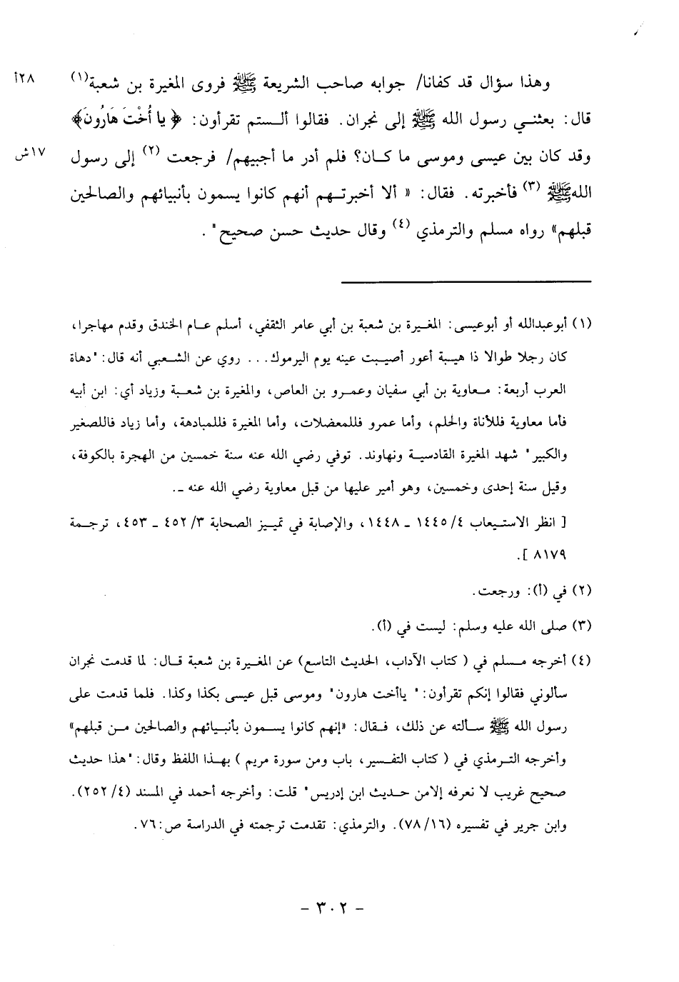 (4) أخرجه مسلم في (كتاب الآداب، الحديث التاسع) عن المغيرة بن شعبة قال: لما قدمت نجران سألوني فقالوا إنكم تقرءون:" يا أخت هارون" وموسى قبل عيسى بكذا وكذا. فلما قدمت على رسول الله صلى الله عليه وسلم سألته عن ذلك، فقال: «إنهم كانوا يسمون بأنبيائهم والصالحين من قبلهم» وأخرجه الترمذي في (كتاب التفسير، باب ومن سورة مريم) بهذا اللفظ وقال:" هذا حديث صحيح غريب لا تعرفه إلا من حديث ابن إدريس" قلت: وأخرجه أحمد في المسند (4/ 252).
