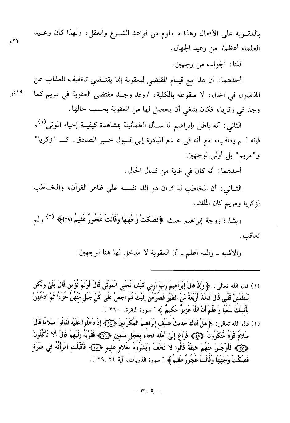 الثاني: أنه باطل بإبراهيم لما سأل الطمأنينة بمشاهدة كيفية إحياء الموتى «1»، فإنه لم يعاقب، مع أنه في عدم المبادرة إلى قبول خبر الصادق. ك" زكريا" و" مريم" بل أولى لوجهين: