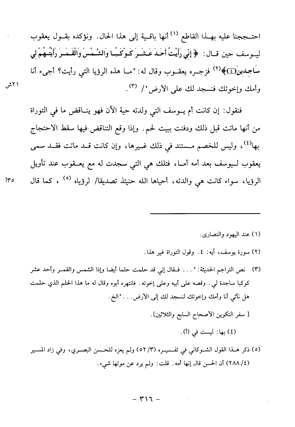 فنقول: إن كانت أم يوسف التي ولدته حية الآن فهو يناقض ما في التوراة من أنها ماتت قبل ذلك ودفنت ببيت لحم. وإذا وقع التناقض فيها سقط الاحتجاج بها «4»، وليس للخصم مستند في ذلك غيرها، وإن كانت قد ماتت فقد سمى يعقوب ليوسف بعد أمه أما، فتلك هي التي سجدت له مع يعقوب عند تأويل الرؤيا، سواء كانت هي والدته، أحياها الله حينئذ تصديقا/ لرؤياه «5»، كما قال