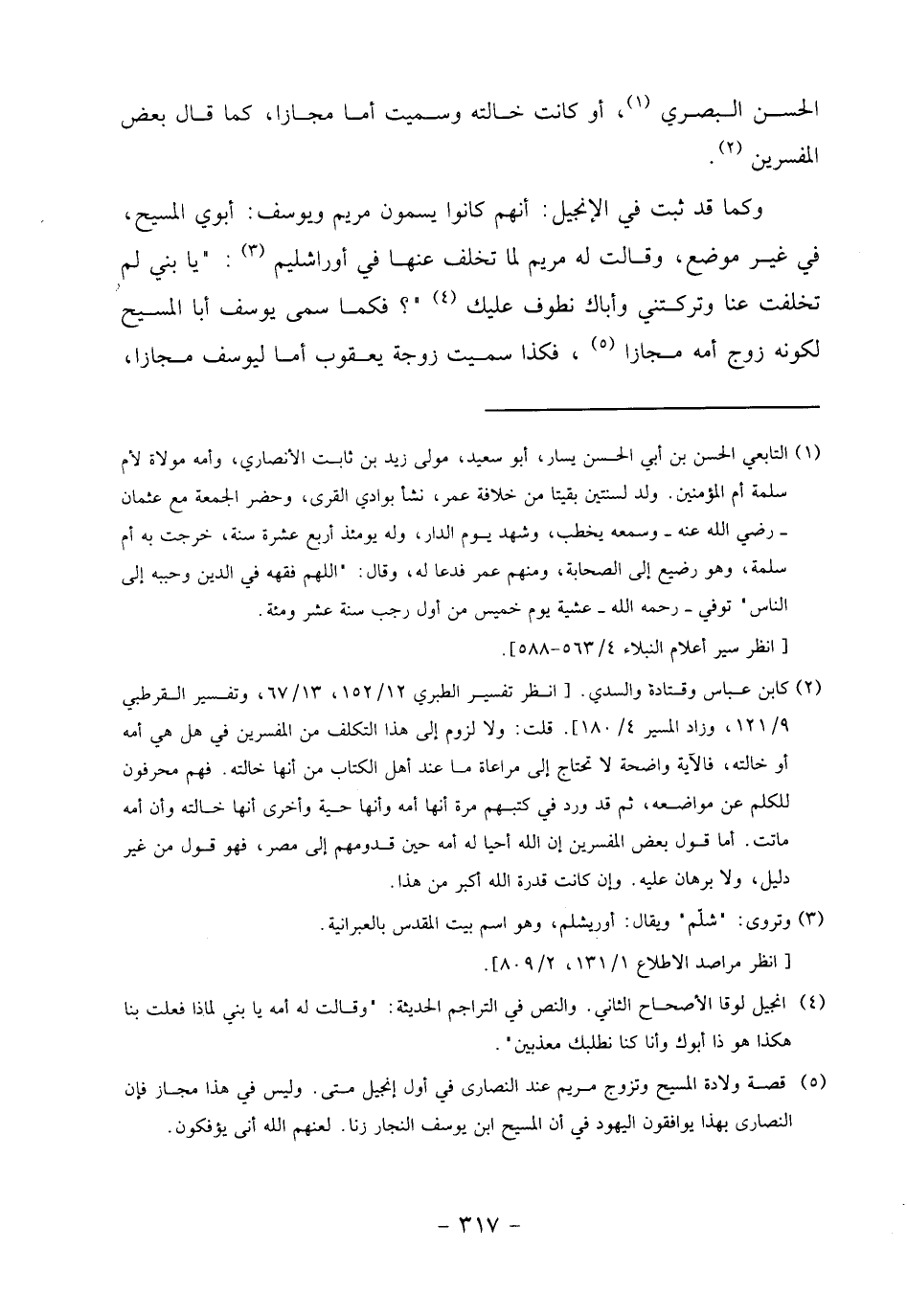 (5) قصة ولادة المسيح وتزوج مريم عند النصارى في أول إنجيل متى. وليس في هذا مجاز فإن النصارى بهذا يوافقون اليهود في أن المسيح ابن يوسف النجار زنا. لعنهم الله أنى يؤفكون.