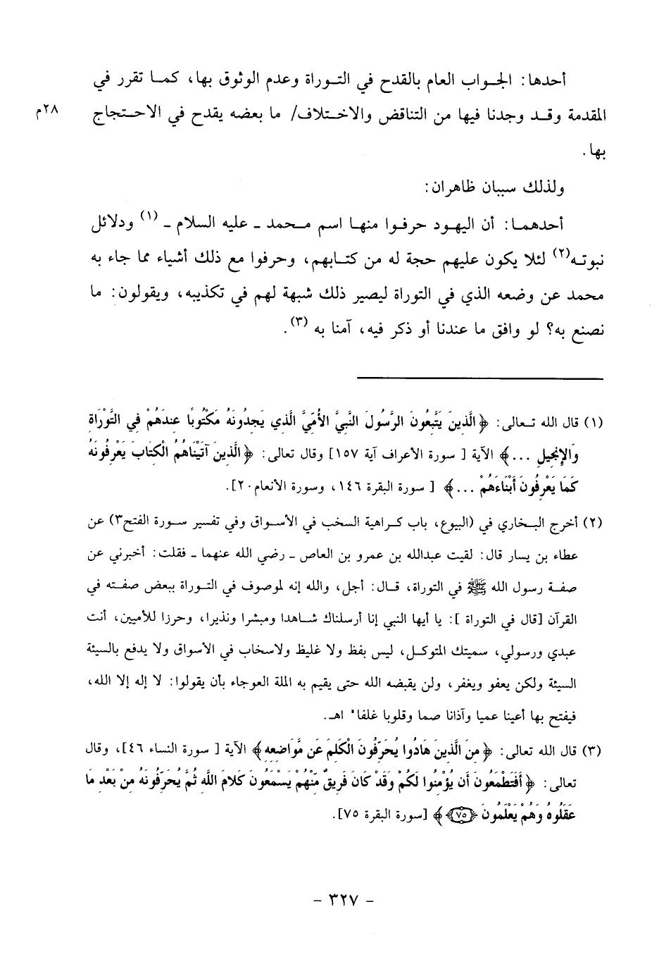 (3) قال الله تعالى: مِنَ الَّذِينَ هادُوا يُحَرِّفُونَ الْكَلِمَ عَنْ مَواضِعِهِ الآية [سورة النساء 46]، وقال تعالى: أَفَتَطْمَعُونَ أَنْ يُؤْمِنُوا لَكُمْ وقَدْ كانَ فَرِيقٌ مِنْهُمْ يَسْمَعُونَ كَلامَ اللَّهِ ثُمَّ يُحَرِّفُونَهُ مِنْ بَعْدِ ما عَقَلُوهُ وهُمْ يَعْلَمُونَ (75) [سورة البقرة 75].