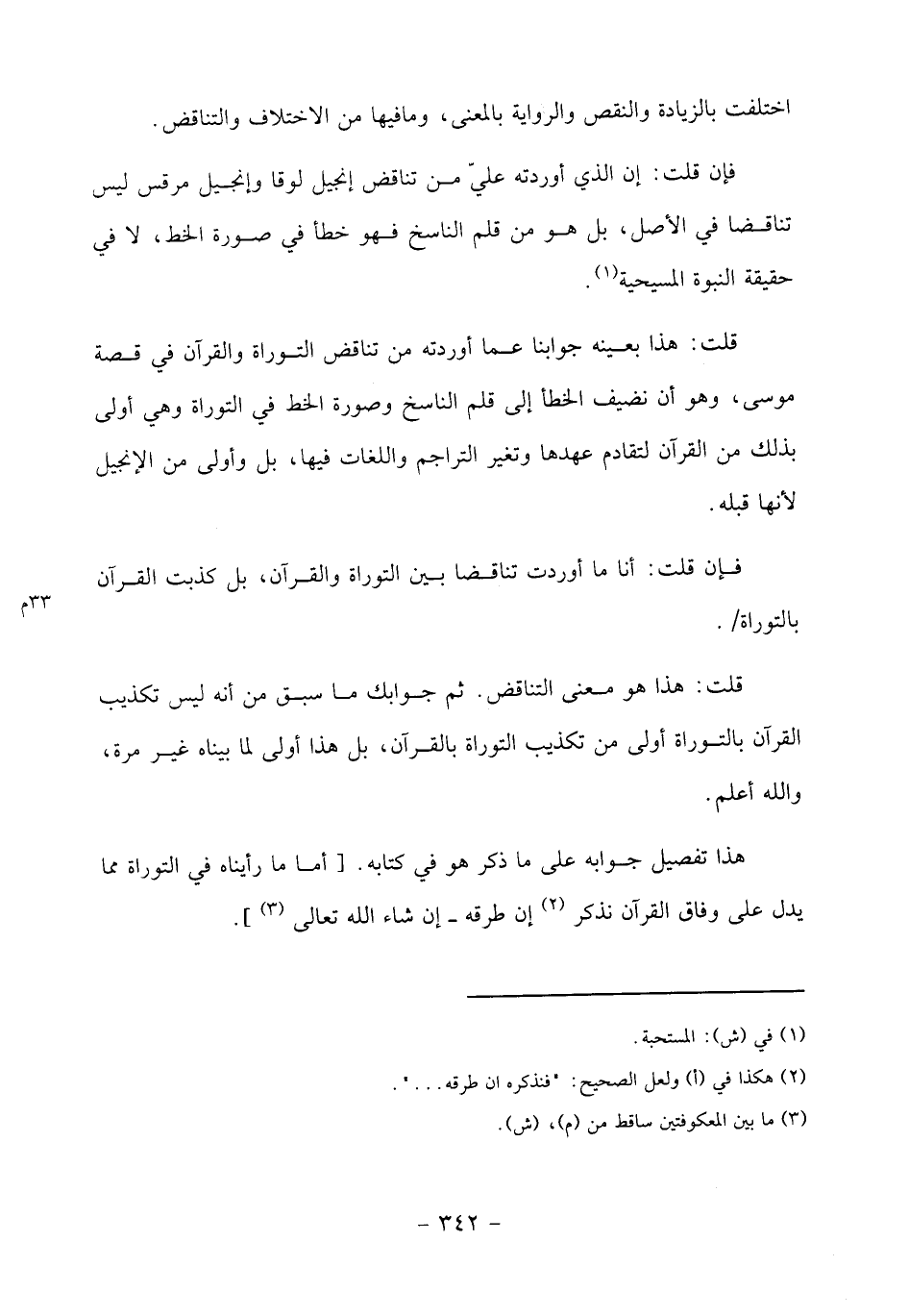 فإن قلت: إن الذي أوردته عليّ من تناقض إنجيل لوقا وإنجيل مرقس ليس تناقضا في الأصل، بل هو من قلم الناسخ فهو خطأ في صورة الخط، لا في حقيقة النبوة المسيحية «1».
