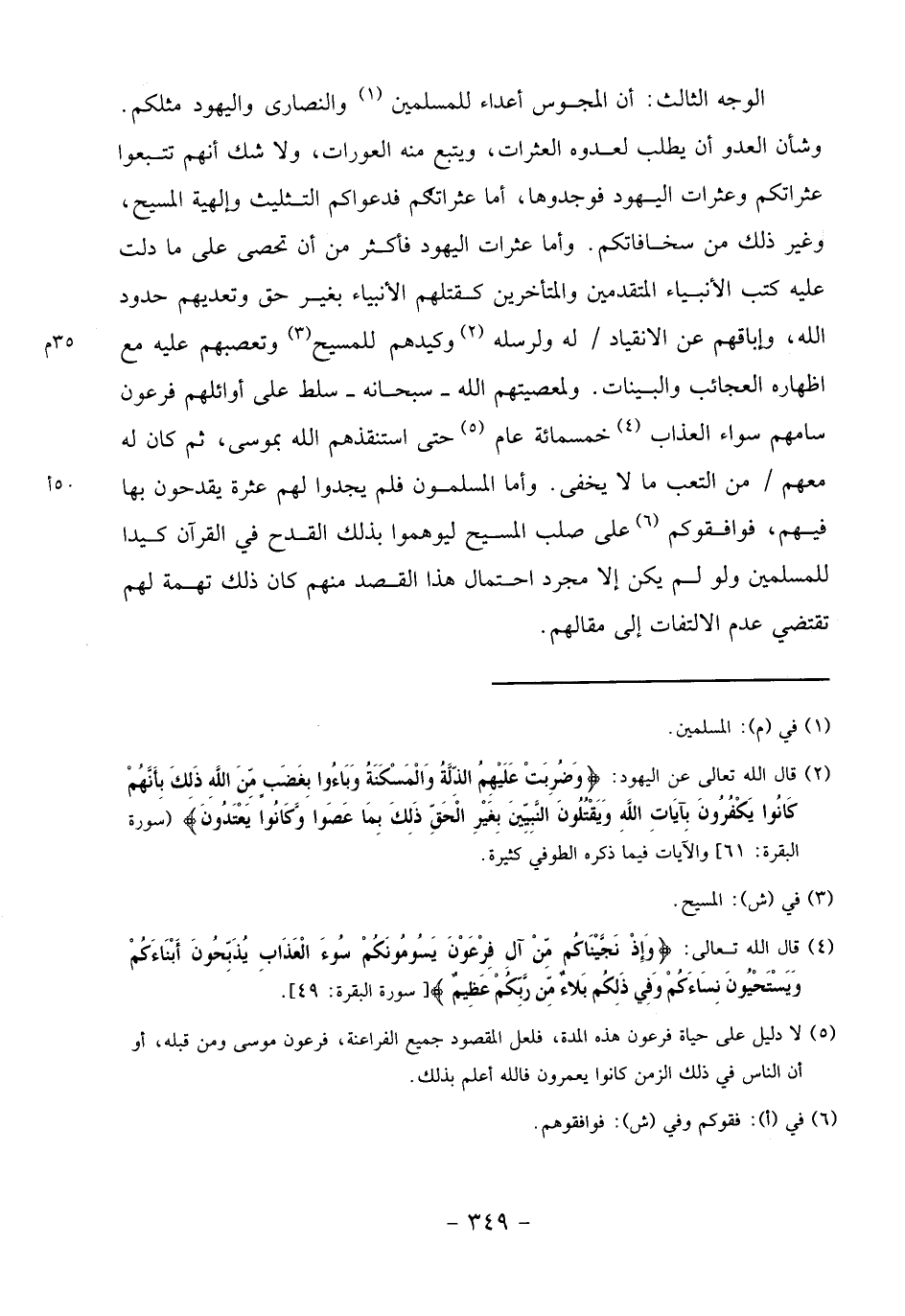الوجه الثالث: أن المجوس أعداء للمسلمين «1» والنصارى واليهود مثلكم.