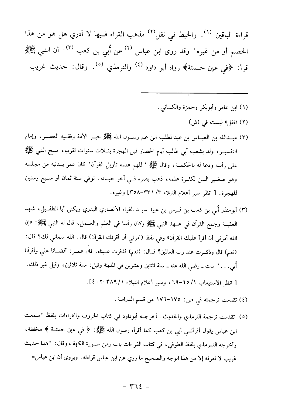 (6) تقدمت ترجمة الترمذي والحديث. أخرجه أبو داود في كتاب الحروف والقراءات بلفظ" سمعت ابن عباس يقول أقرأني أبي بن كعب كما أقرأه رسول الله صلّى الله عليه وسلّم: فِي عَيْنٍ حَمِئَةٍ مخففة، وأخرجه الترمذي بلفظ الطوفي، في كتاب القراءات باب ومن سورة الكهف وقال:" هذا حديث غريب لا نعرفه إلا من هذا الوجه والصحيح ما روي عن ابن عباس قراءته. ويروى أن ابن عباس-