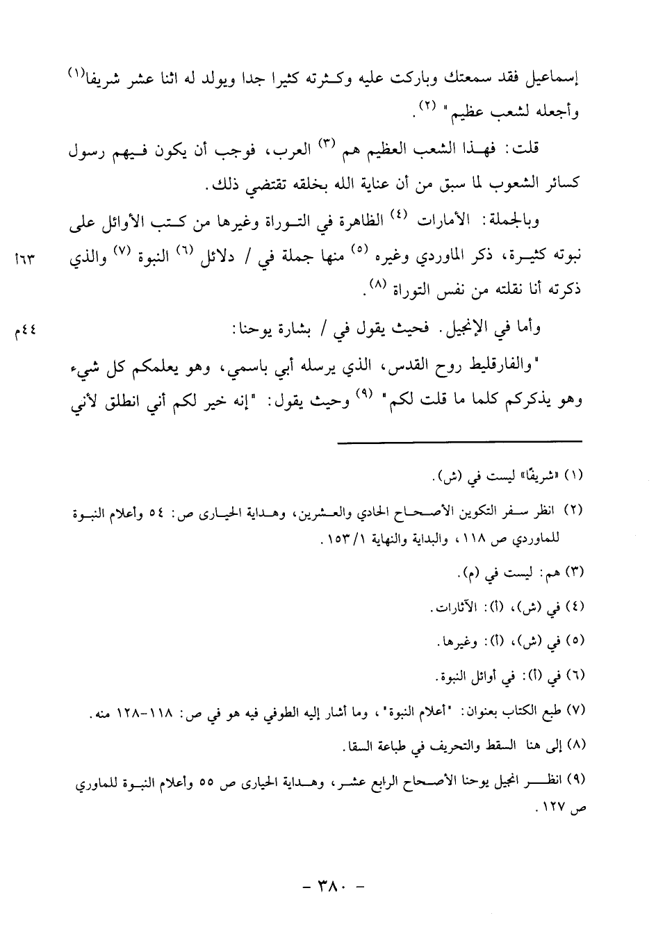 (9) انظر انجيل يوحنا الأصحاح الرابع عشر، وهداية الحيارى ص 55 وأعلام النبوة للماوردي ص 127.