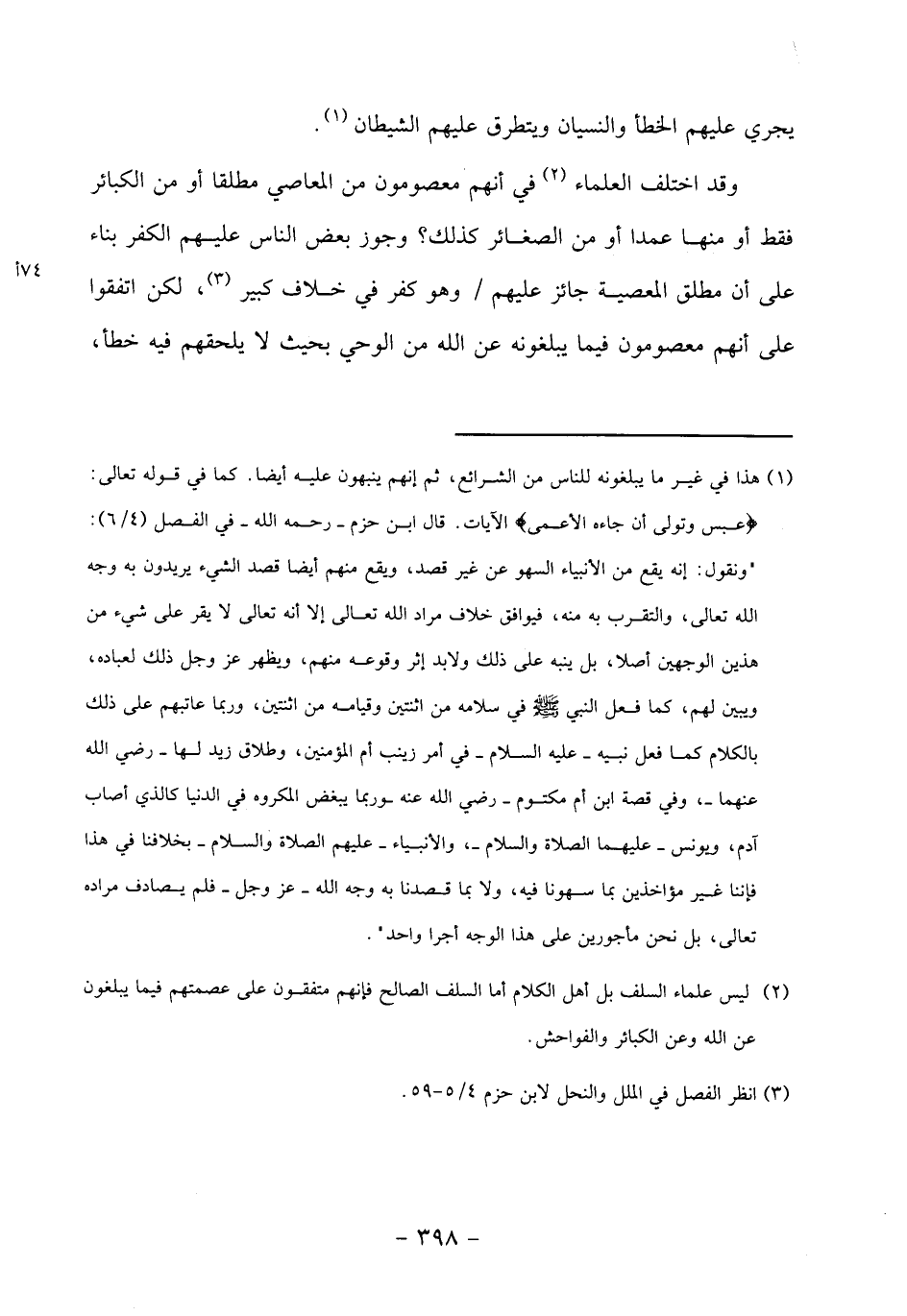 (2) ليس علماء السلف بل أهل الكلام أما السلف الصالح فإنهم متفقون على عصمتهم فيما يبلغون عن الله وعن الكبائر والفواحش.
