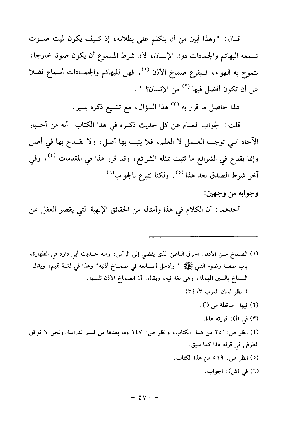 (4) انظر ص: 241 من هذا الكتاب، وانظر ص: 147 وما بعدها من قسم الدراسة. ونحن لا نوافق الطوفي في قوله هذا كما سبق.