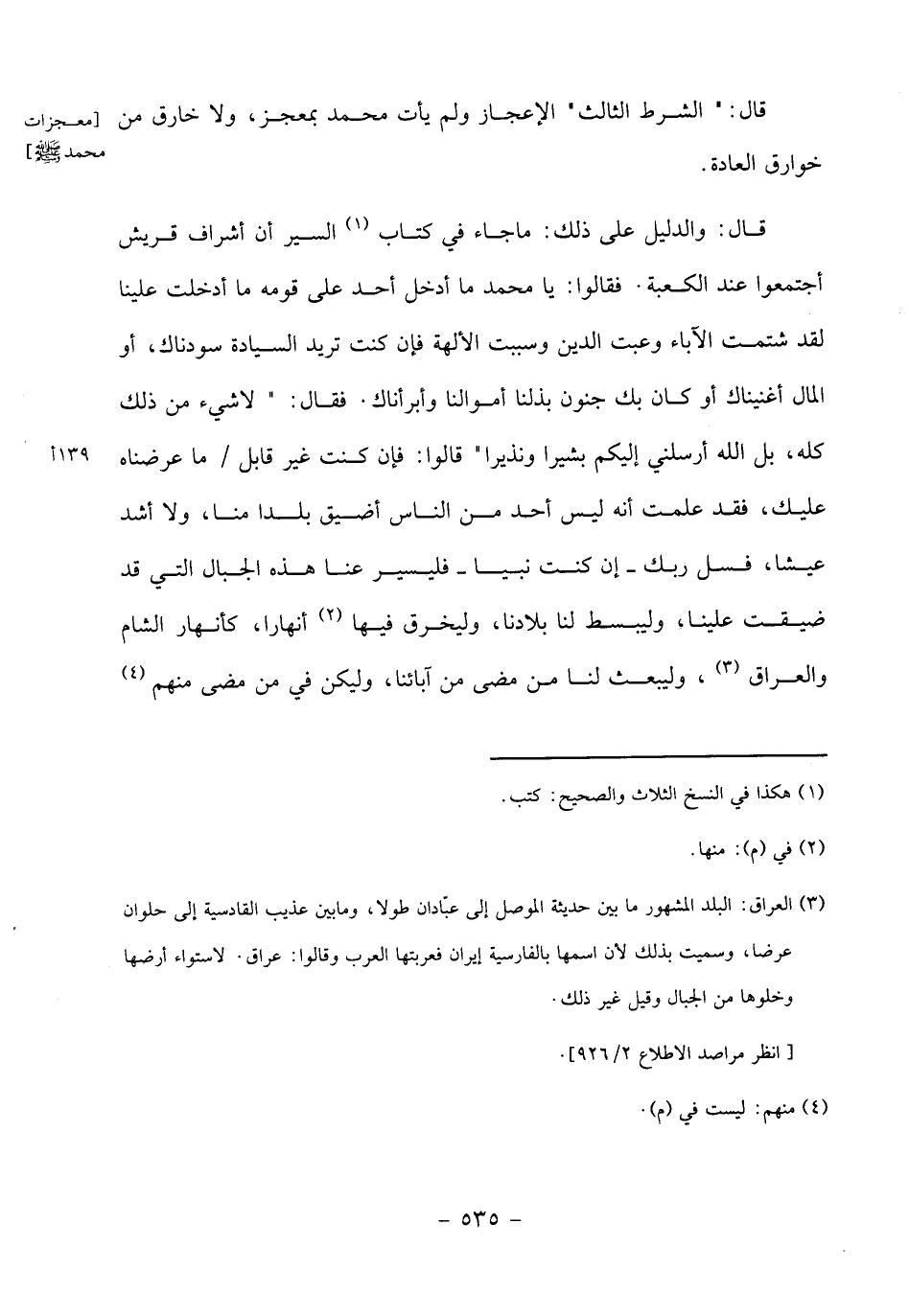 قال:" الشرط الثالث" الإعجاز ولم يأت محمد بمعجز، ولا خارق من خوارق العادة.