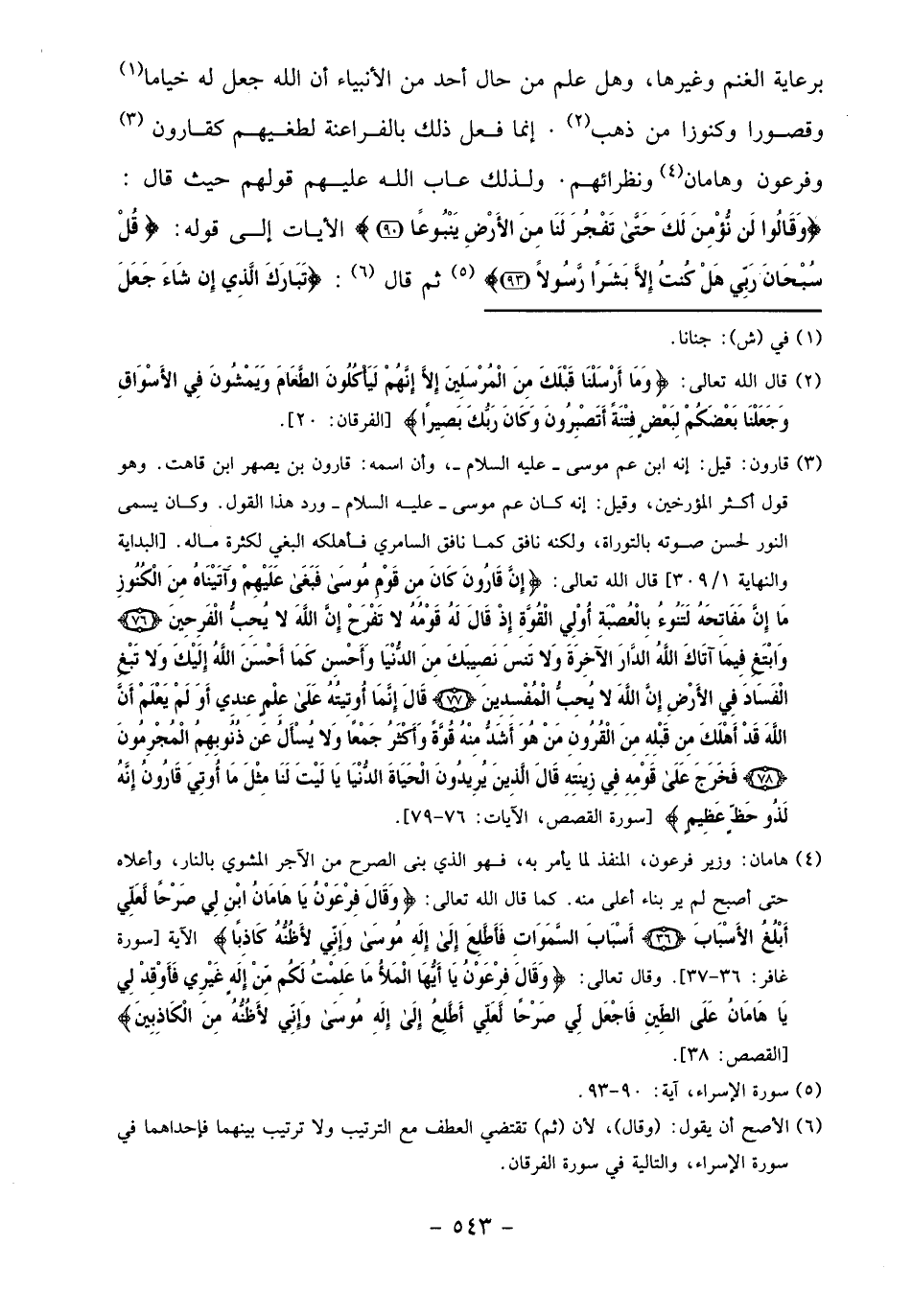 (6) الأصح أن يقول: (وقال)، لأن (ثم) تقتضي العطف مع الترتيب ولا ترتيب بينهما فإحداهما في سورة الإسراء، والتالية في سورة الفرقان.