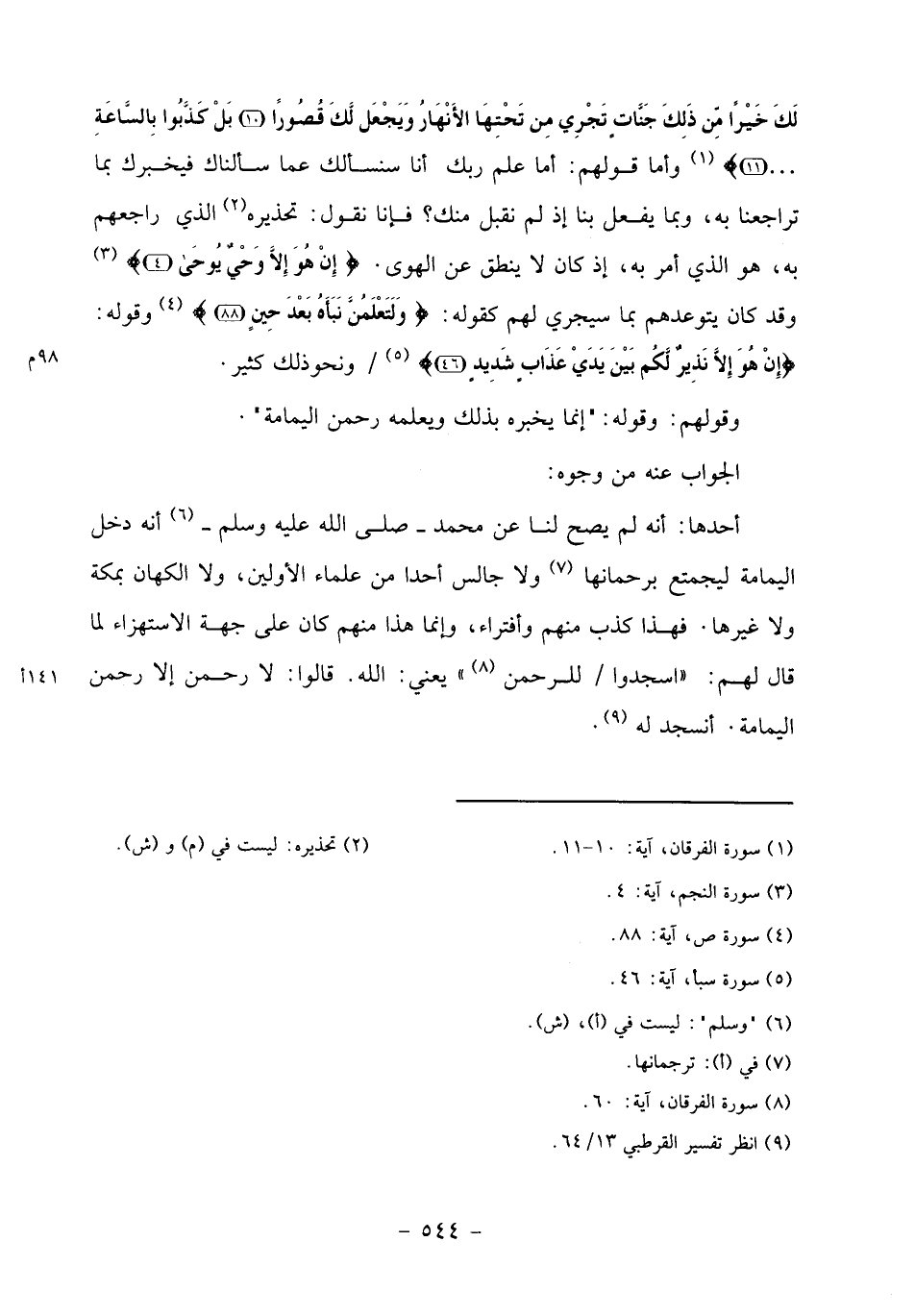 (9) انظر تفسير القرطبي 13/ 64.