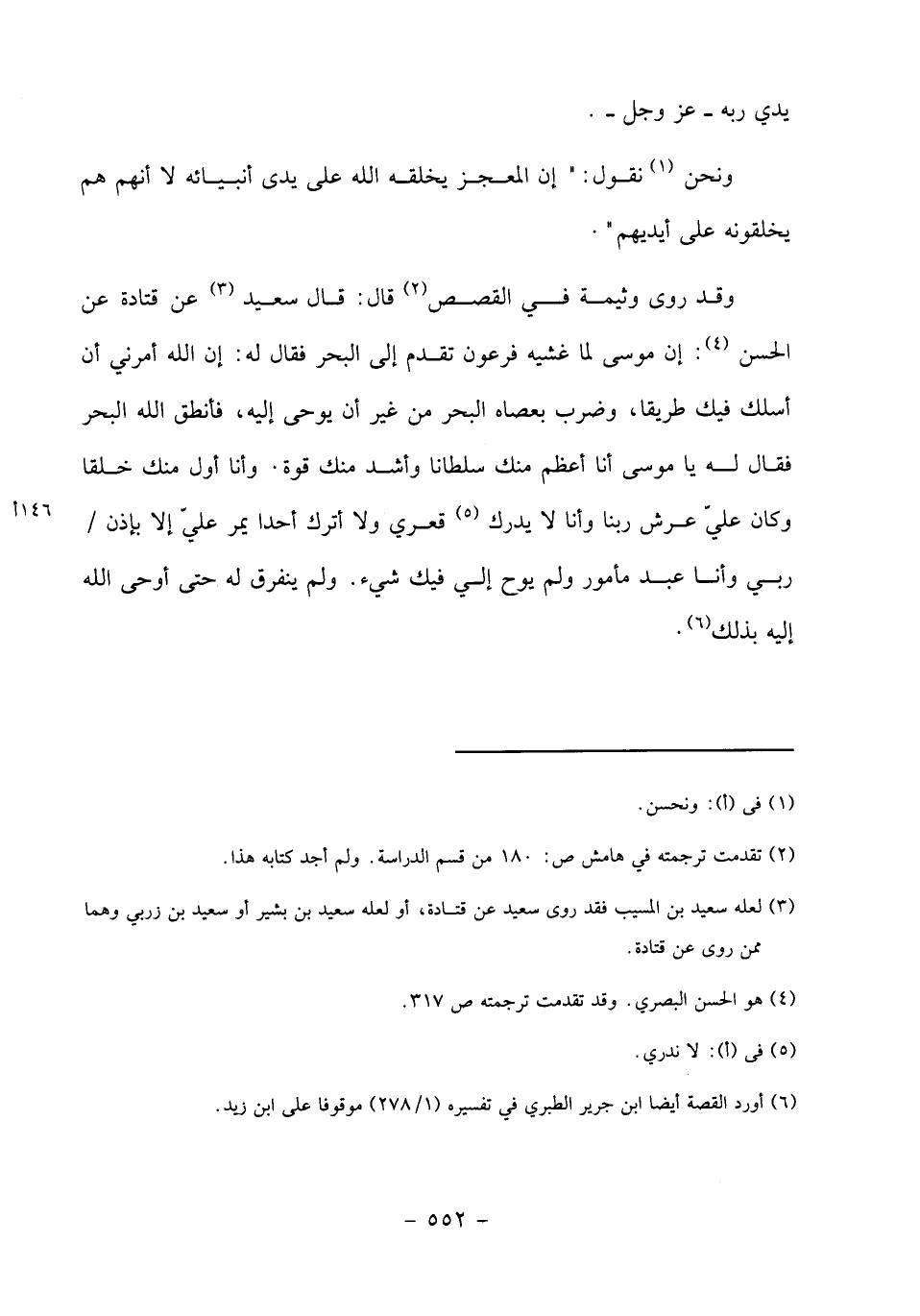 (3) لعله سعيد بن المسيب فقد روى سعيد عن قتادة، أو لعله سعيد بن بشير أو سعيد بن زربي وهما ممن روى عن قتادة.