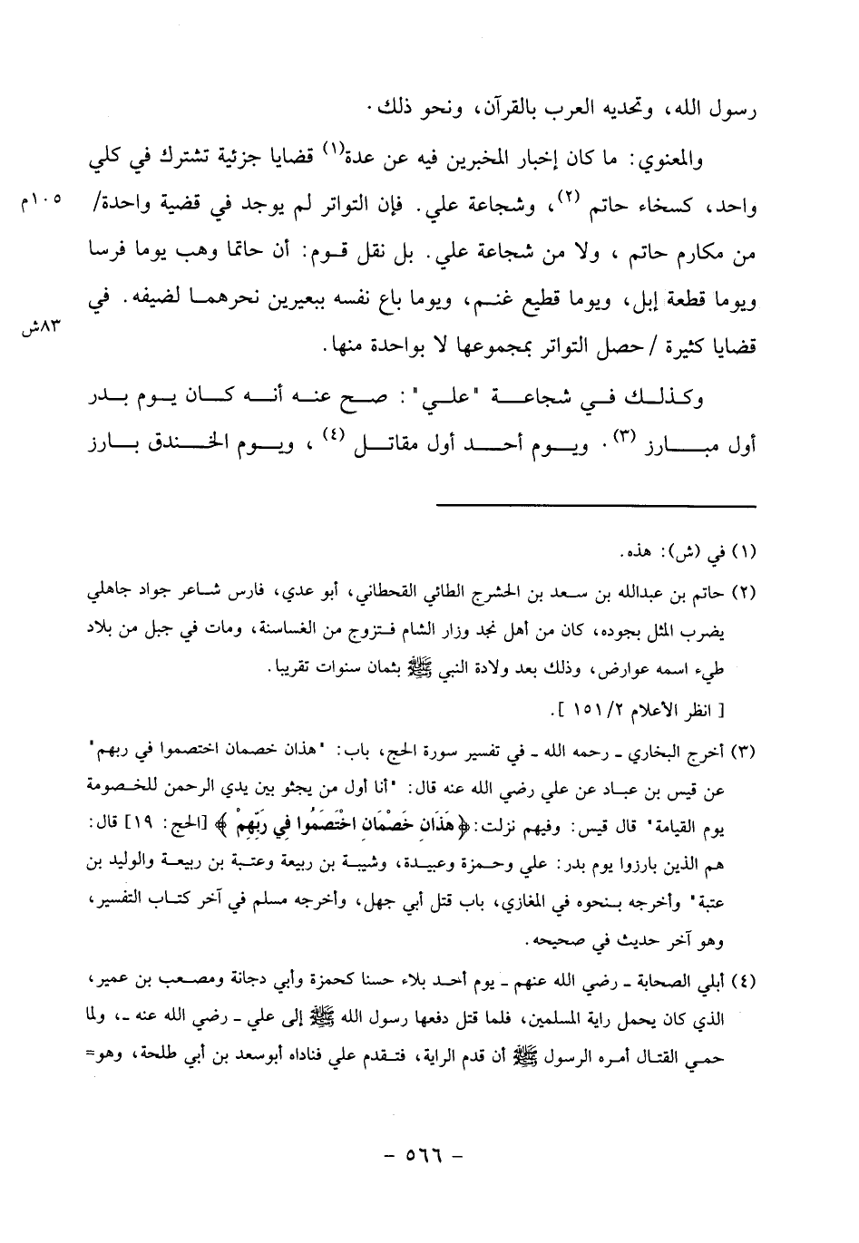 وكذلك في شجاعة" علي": صح عنه أنه كان يوم بدر أول مبارز «3». ويوم أحد أول مقاتل «4»، ويوم الخندق بارز