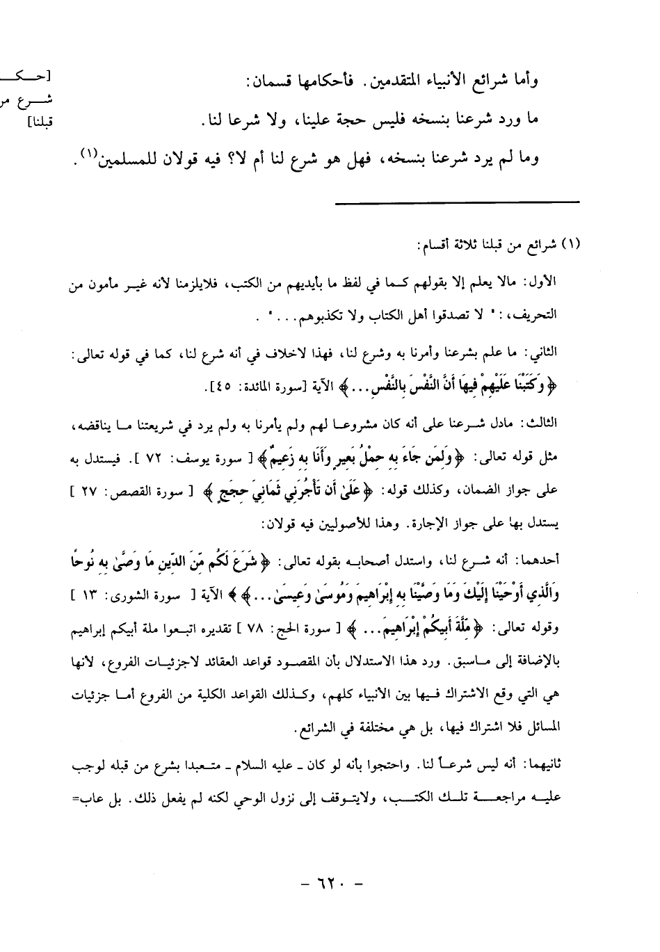 (1) شرائع من قبلنا ثلاثة أقسام: