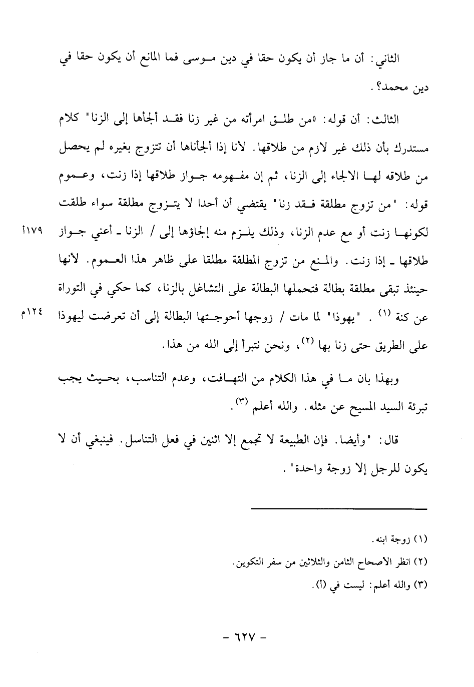 وبهذا بان ما في هذا الكلام من التهافت، وعدم التناسب، بحيث يجب تبرئة السيد المسيح عن مثله. والله أعلم «3».