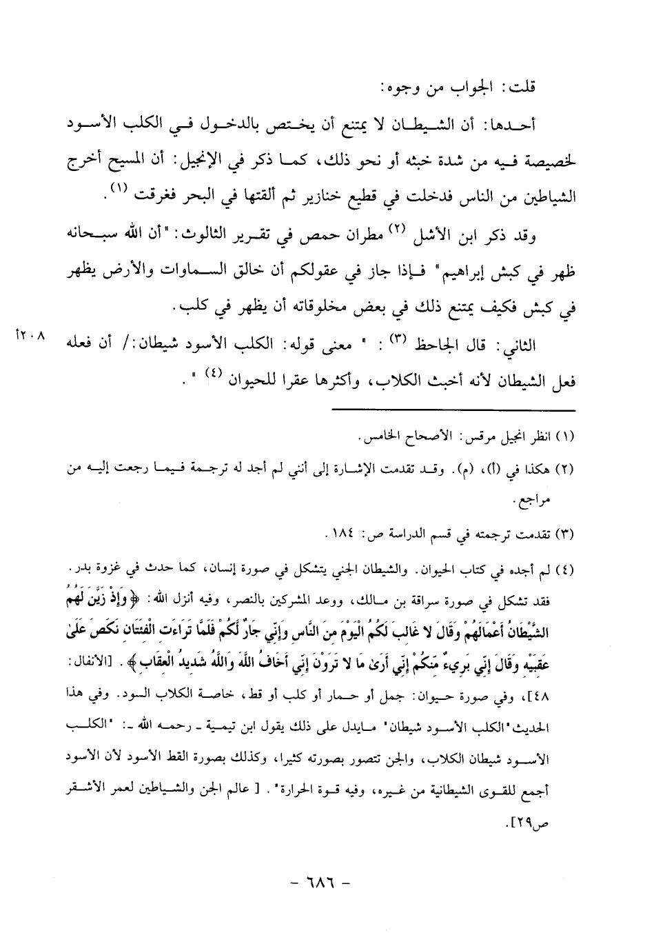 (4) لم أجده في كتاب الحيوان. والشيطان الجني يتشكل في صورة إنسان، كما حدث في غزوة بدر.