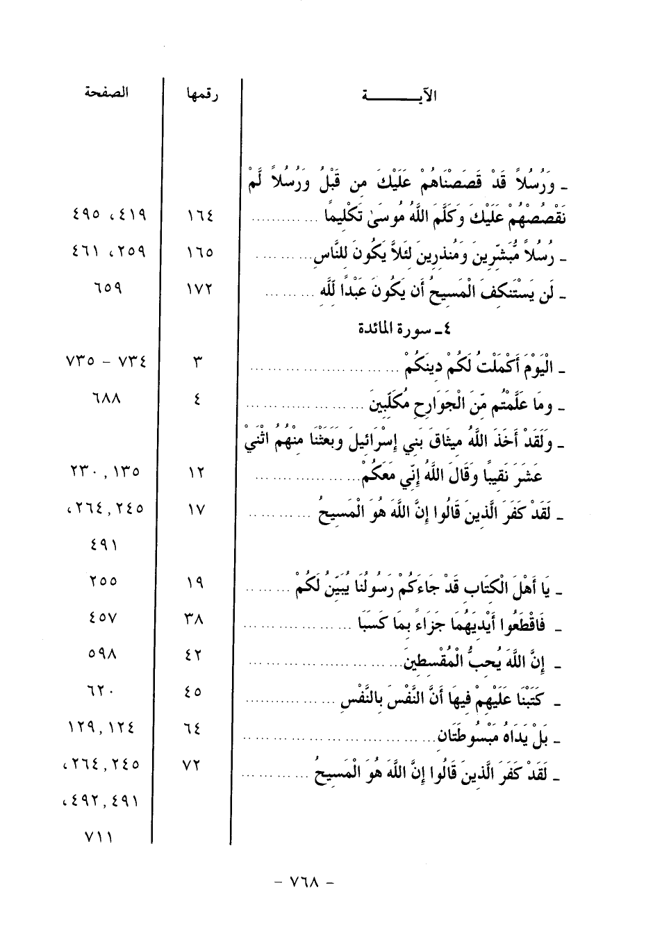 - لَقَدْ كَفَرَ الَّذِينَ قالُوا إِنَّ اللَّهَ هُوَ الْمَسِيحُ / 72/ 245، 264، 491، 492،// 711