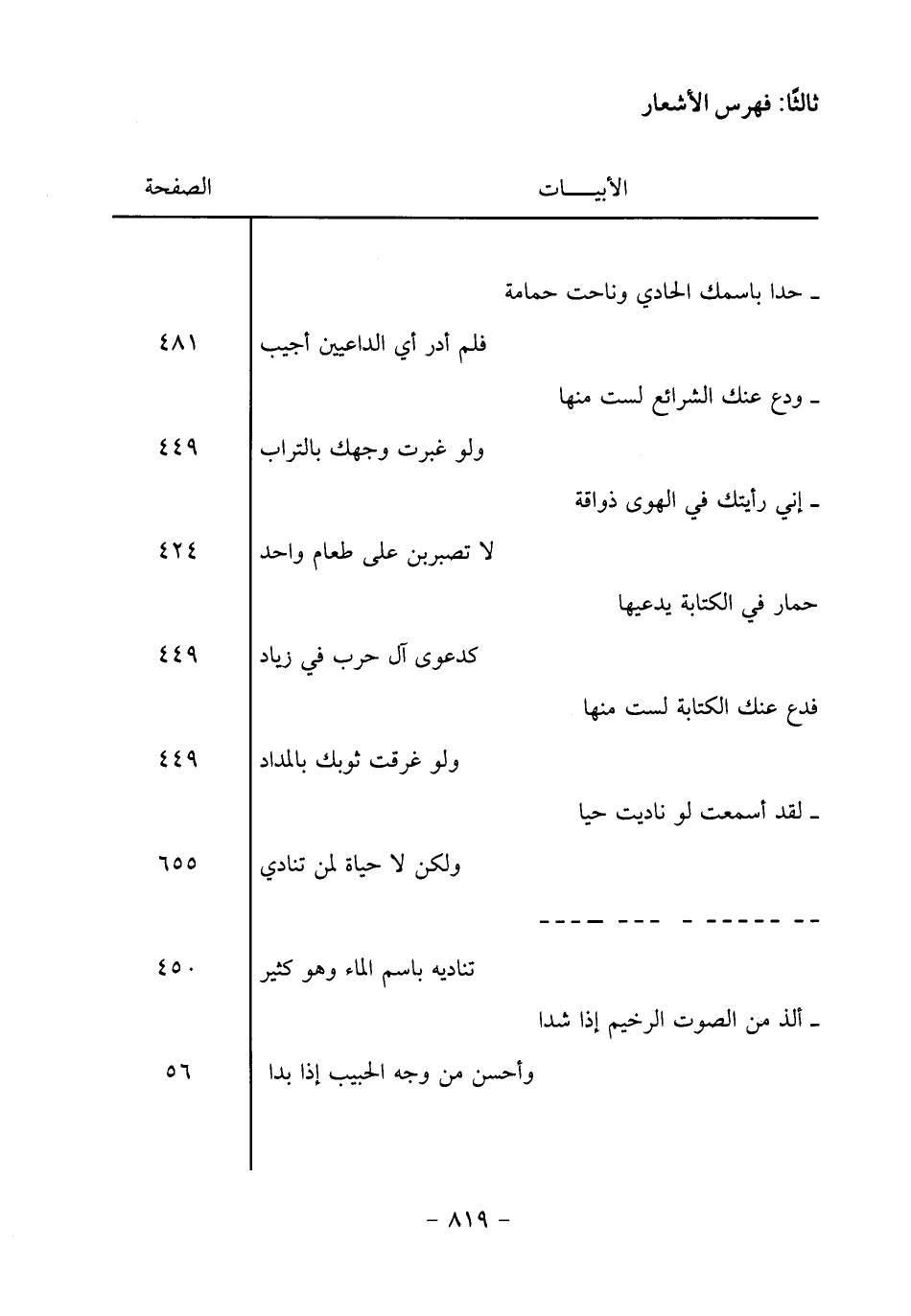 ثالثا: فهرس الأشعار