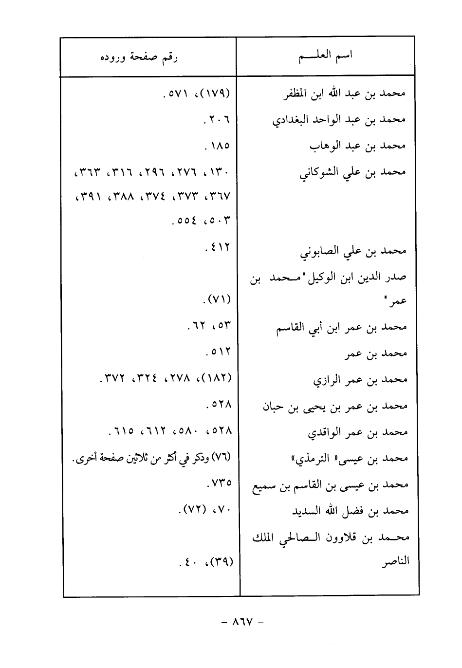 محمد بن عيسى «الترمذي» (76) وذكر في أكثر من ثلاثين صفحة أخرى.