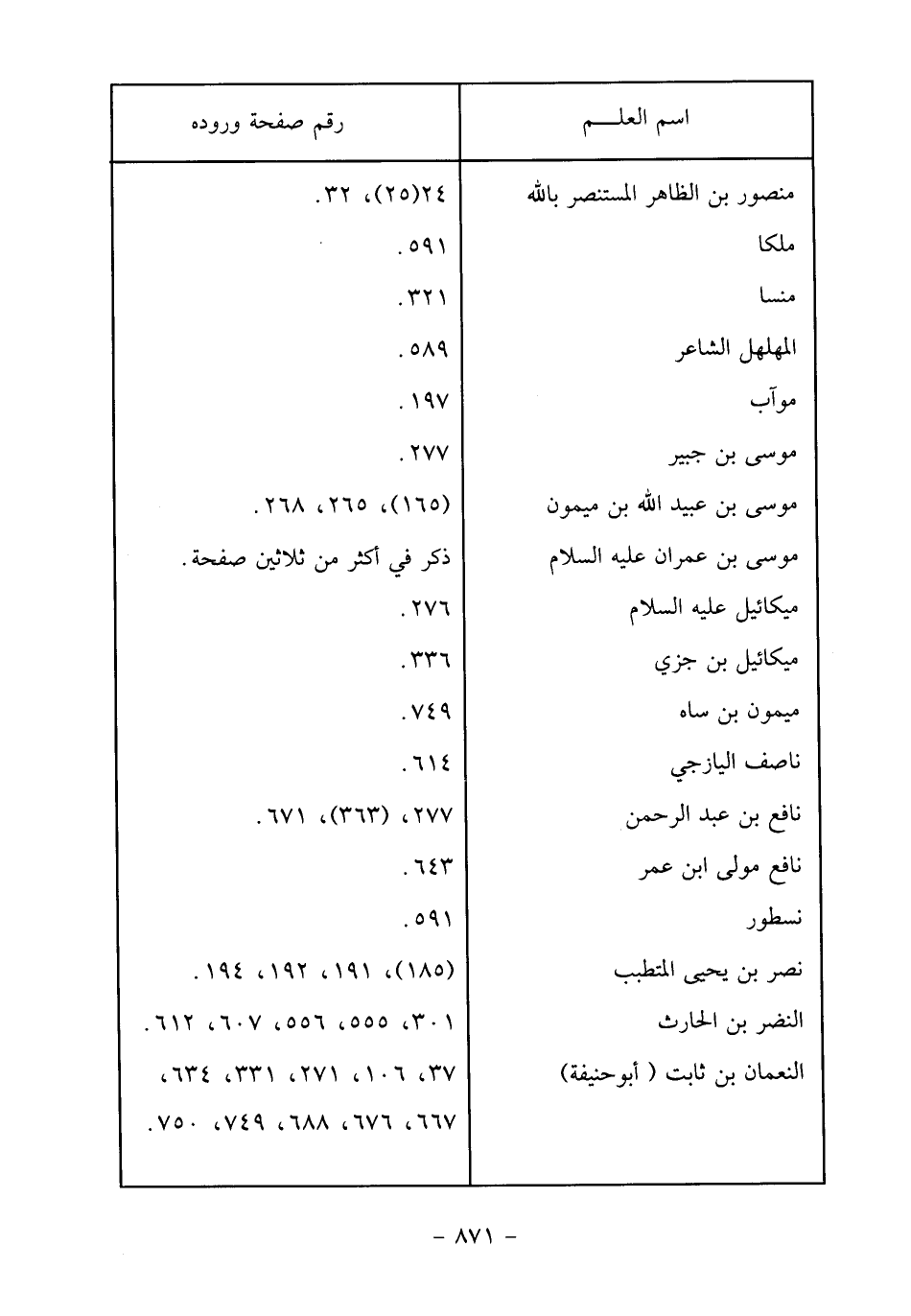 نصر بن يحيى المتطبب (185)، 191، 192، 194.