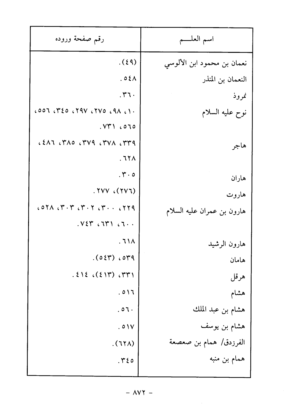 هارون بن عمران عليه السلام 229، 300، 302، 303، 528، 600، 631، 743.