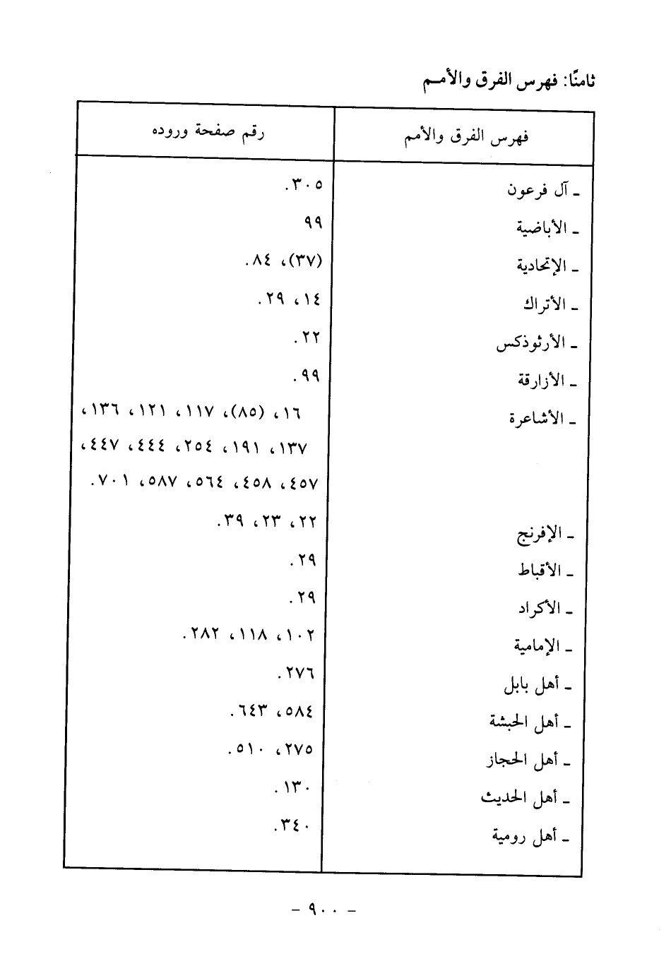 ثامنا: فهرس الفرق والأمم