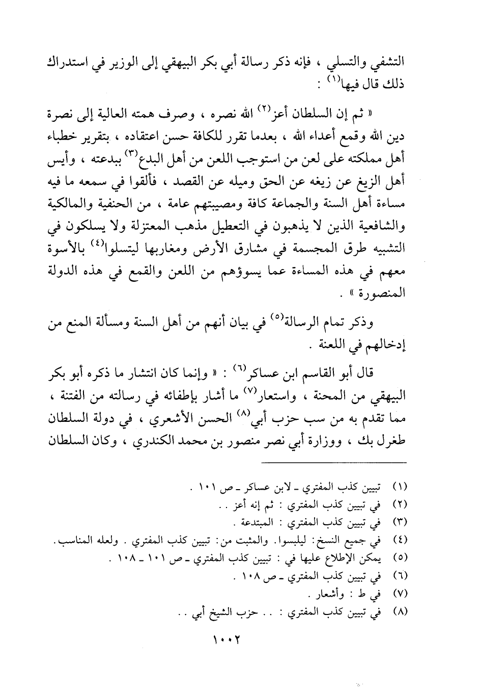 (¬6) في تبيين كذب المفتري - ص: 108.