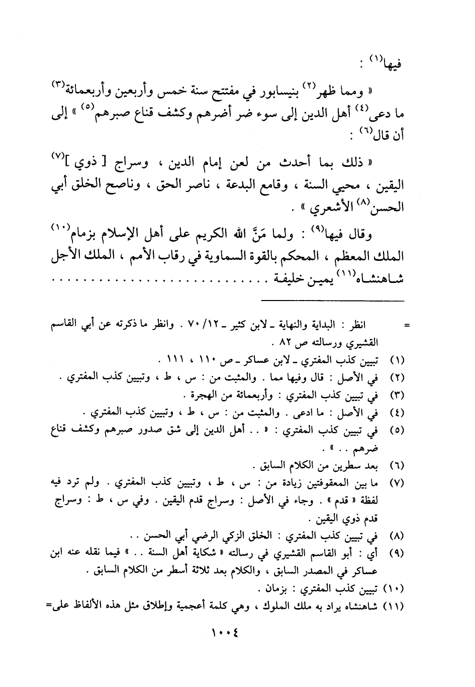 = انظر: البداية والنهاية -لابن كثير- 12/ 70. وانظر ما ذكرته عن أبي القاسم القشيري ورسالته ص: 82.