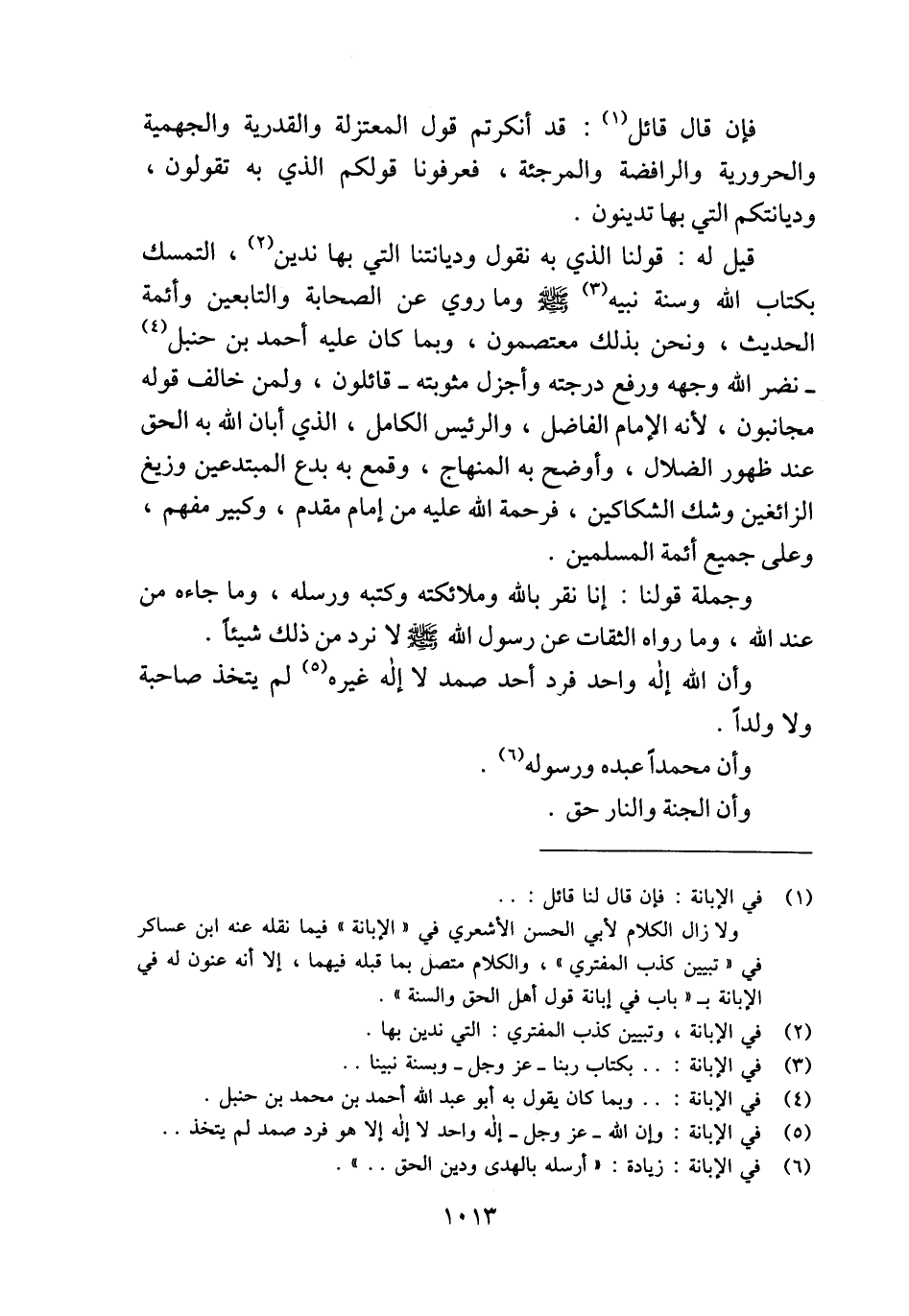 (¬2) في الإبانة، وتبيين كذب المفتري: التي ندين بها.