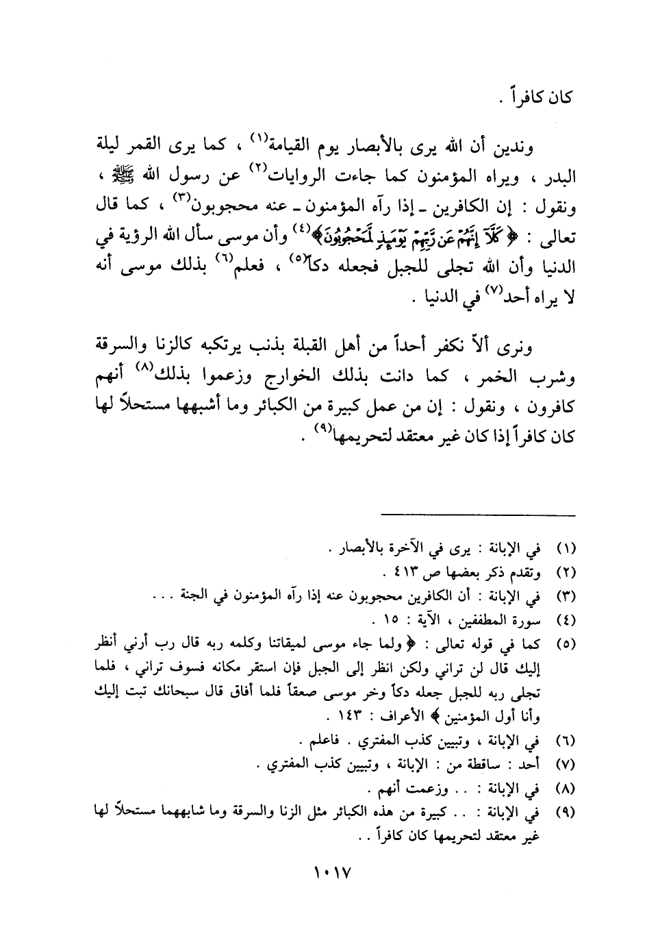 (¬3) في الإبانة: أن الكافرين محجوبون عنه إذا رآه المؤمنون في الجنة. . .