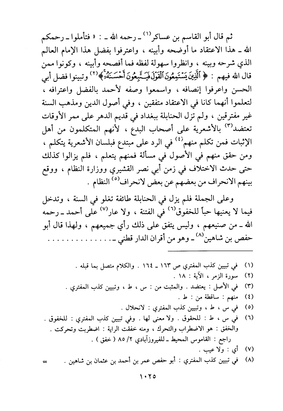 (¬8) في تبيين كذب المفتري: أبو حفص عمر بن أحمد بن عثمان بن شاهين. =