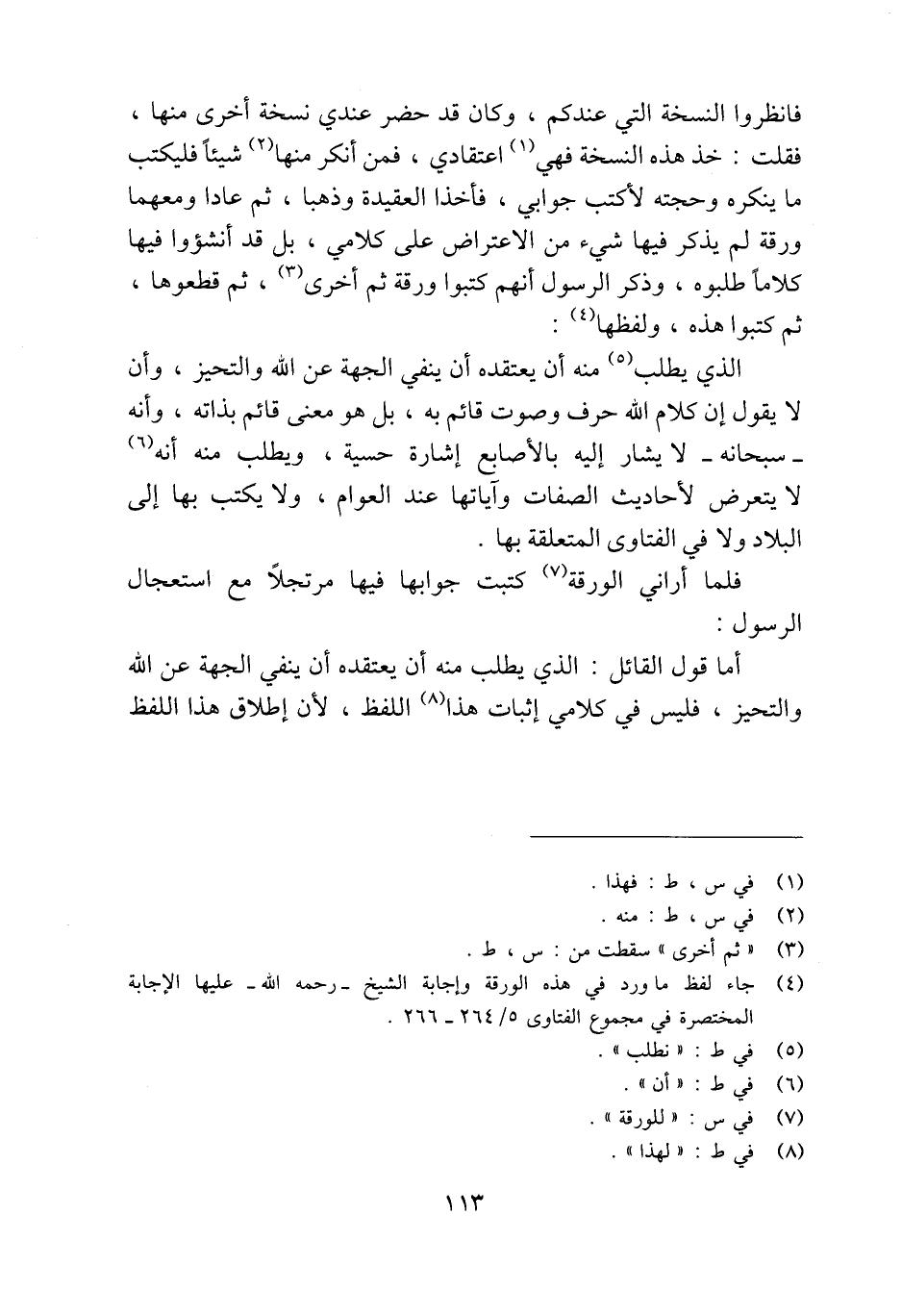 (¬4) جاء لفظ ما ورد في هذه الورقة وإجابة الشيخ -رحمه الله- عليه الإجابة المختصرة في مجموع الفتاوى 5/ 264 - 266.