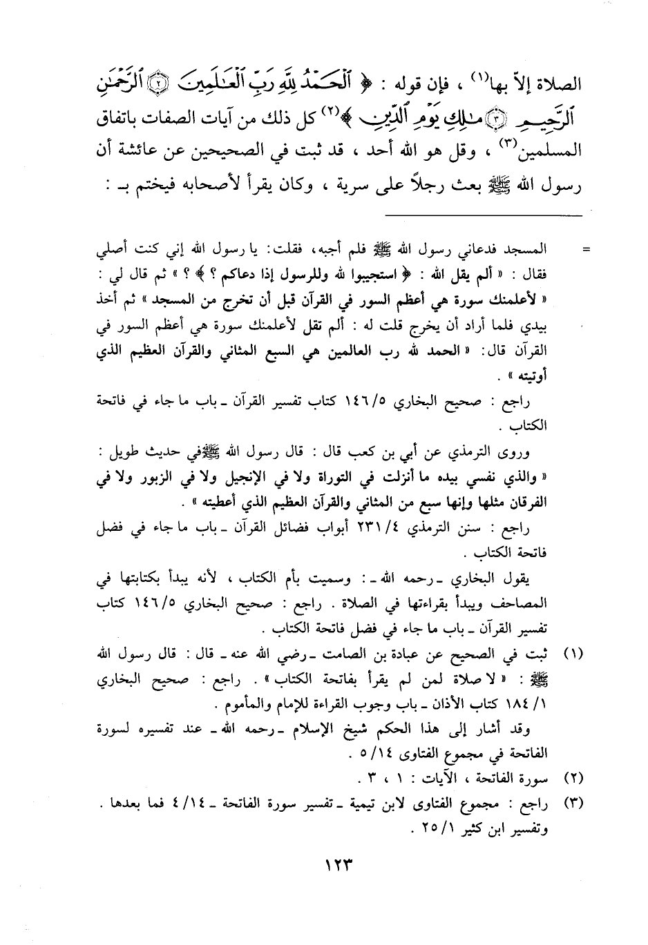 (¬3) راجع: مجموع الفتاوى لابن تيمية -تفسير سورة الفاتحة- 14/ 4 فما بعدها.