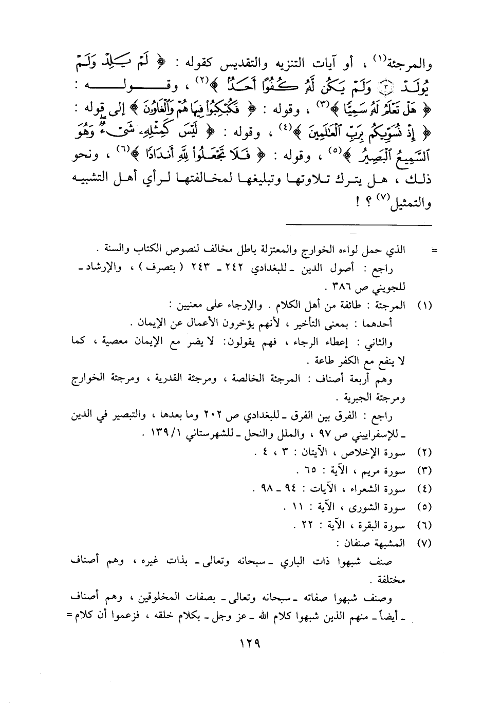 راجع: أصول الدين -للبغدادي 242 - 243 (بتصرف)، والإرشاد- للجويني ص: 386.