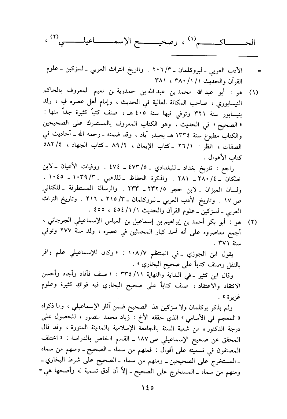 (¬2) هو: أبو بكر أحمد بن إبراهيم بن إسماعيل بن العباس الإسماعيلي الجرجاني، أجمع معاصروه على أنه أحد كبار المحدثين في عصره، ولد سنة 277 وتوفي سنة 371.
