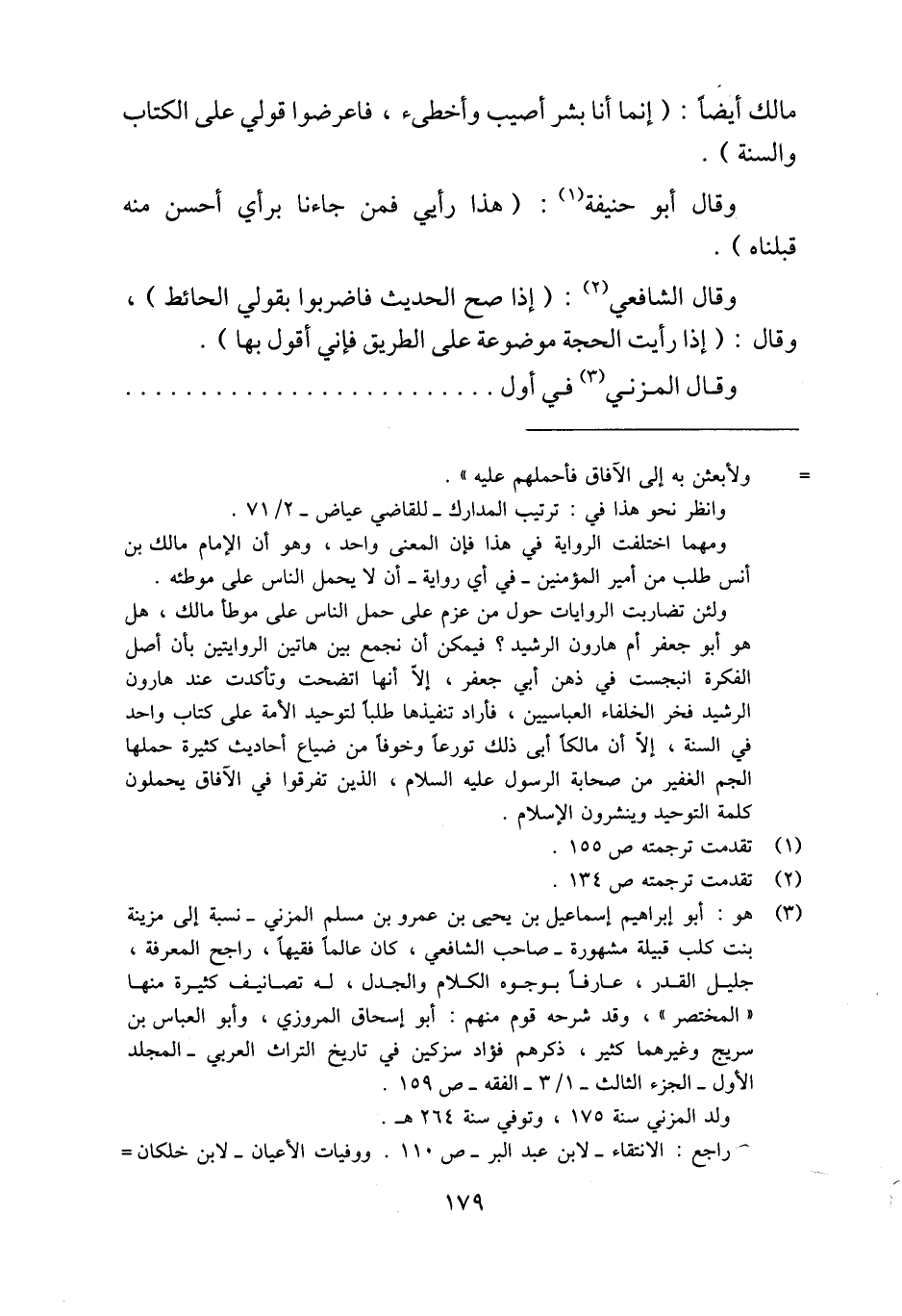 مالك أيضًا: (إنما أنا بشر أصيب وأخطئ، فاعرضوا قولي على الكتاب والسنة).