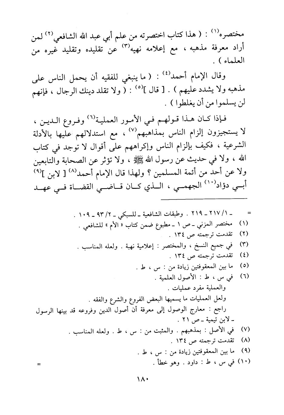 (¬1) مختصر المزني- ص: 1 - مطبوع ضمن كتاب "الأم" للشافعي.