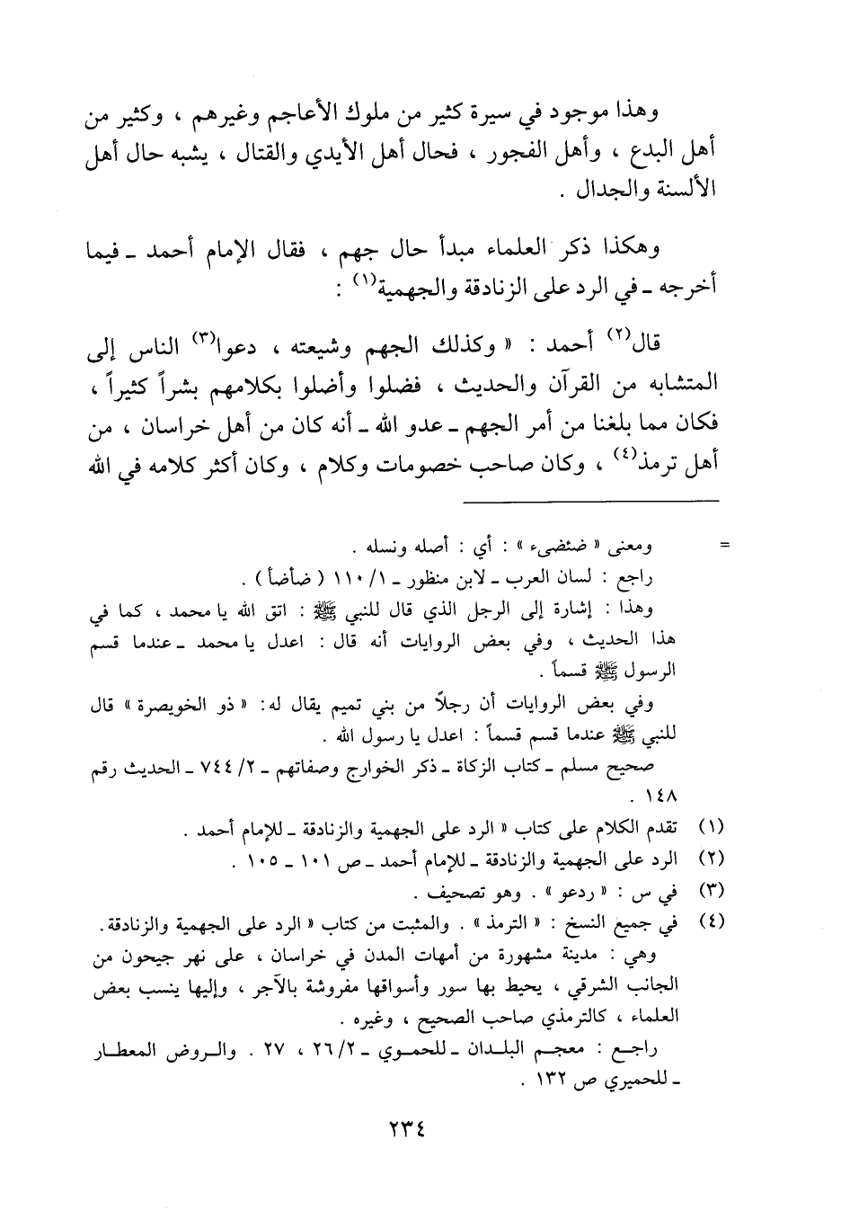 (¬4) في جميع النسخ: "الترمذي". والمثبت من كتاب "الرد على الجهمية والزنادقة. وهي: مدينة مشهورة من أمهات المدن في خراسان، على نهر جيحون من الجانب الشرقي، يحيط بها سور وأسواقها مفروشة بالآجر، وإليها ينسب بعض العلماء، كالترمذي صاحب الصحيح، وغيره.