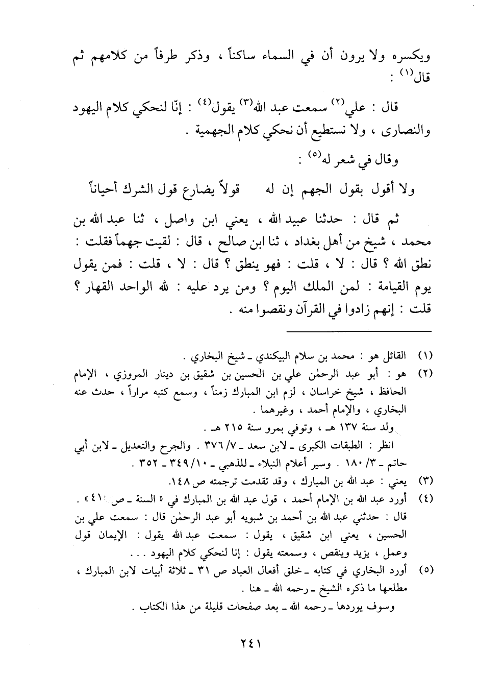 (¬5) أورد البخاري في كتابه -خلق أفعال العباد ص: 31 - ثلاثة أبيات لابن المبارك، مطلعها ما ذكره الشيخ -رحمه الله- هنا.