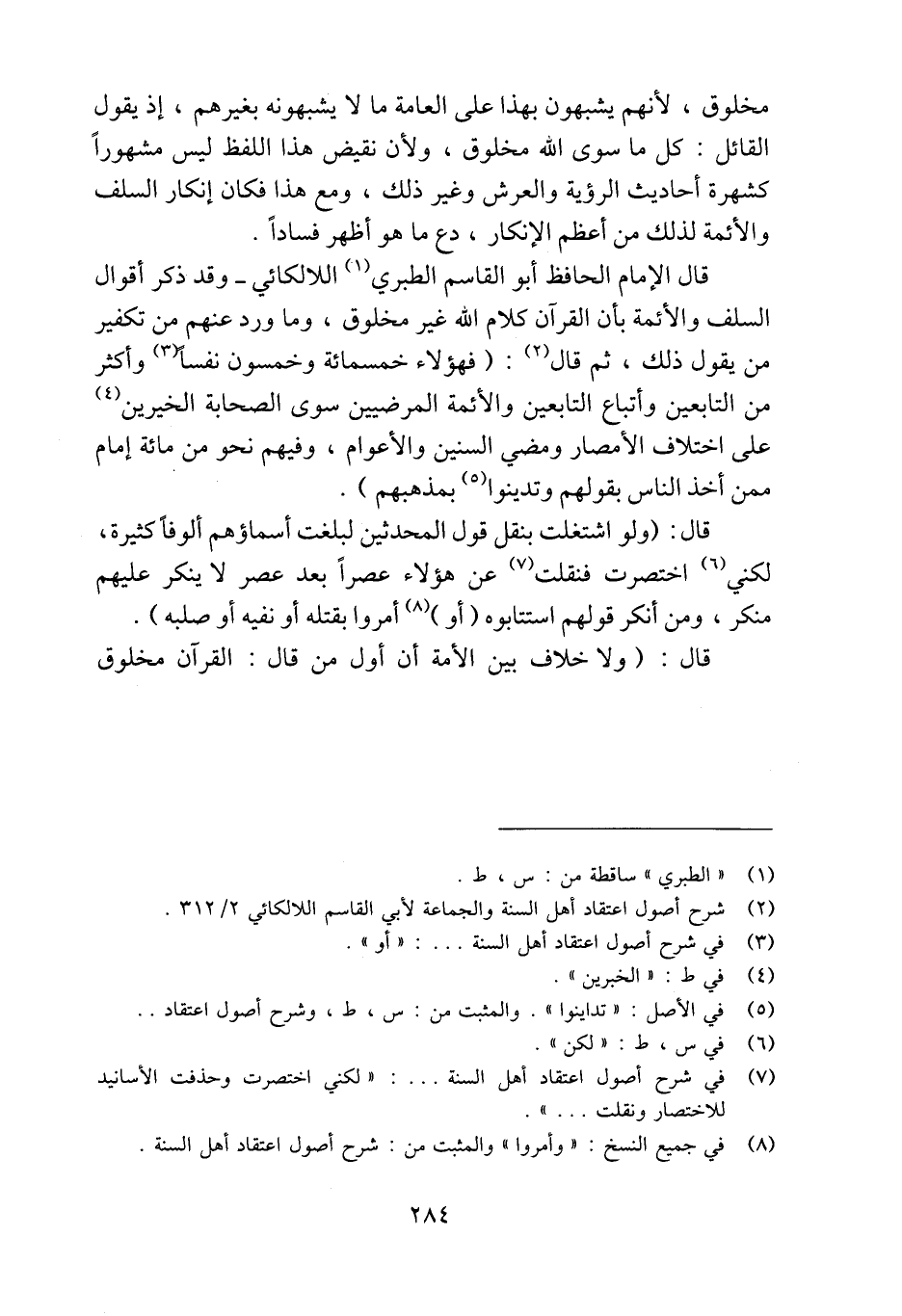 (¬2) شرح أصول اعتقاد أهل السنة والجماعة لأبي القاسم اللالكائي 2/ 312.