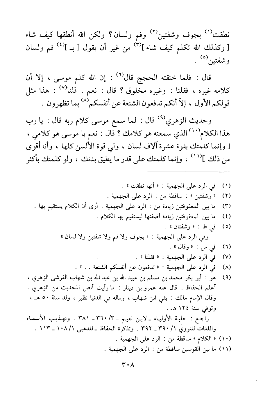 (¬8) في الرد على الجهمية: "تدفعون عن أنفسكم الشنعة. . ".