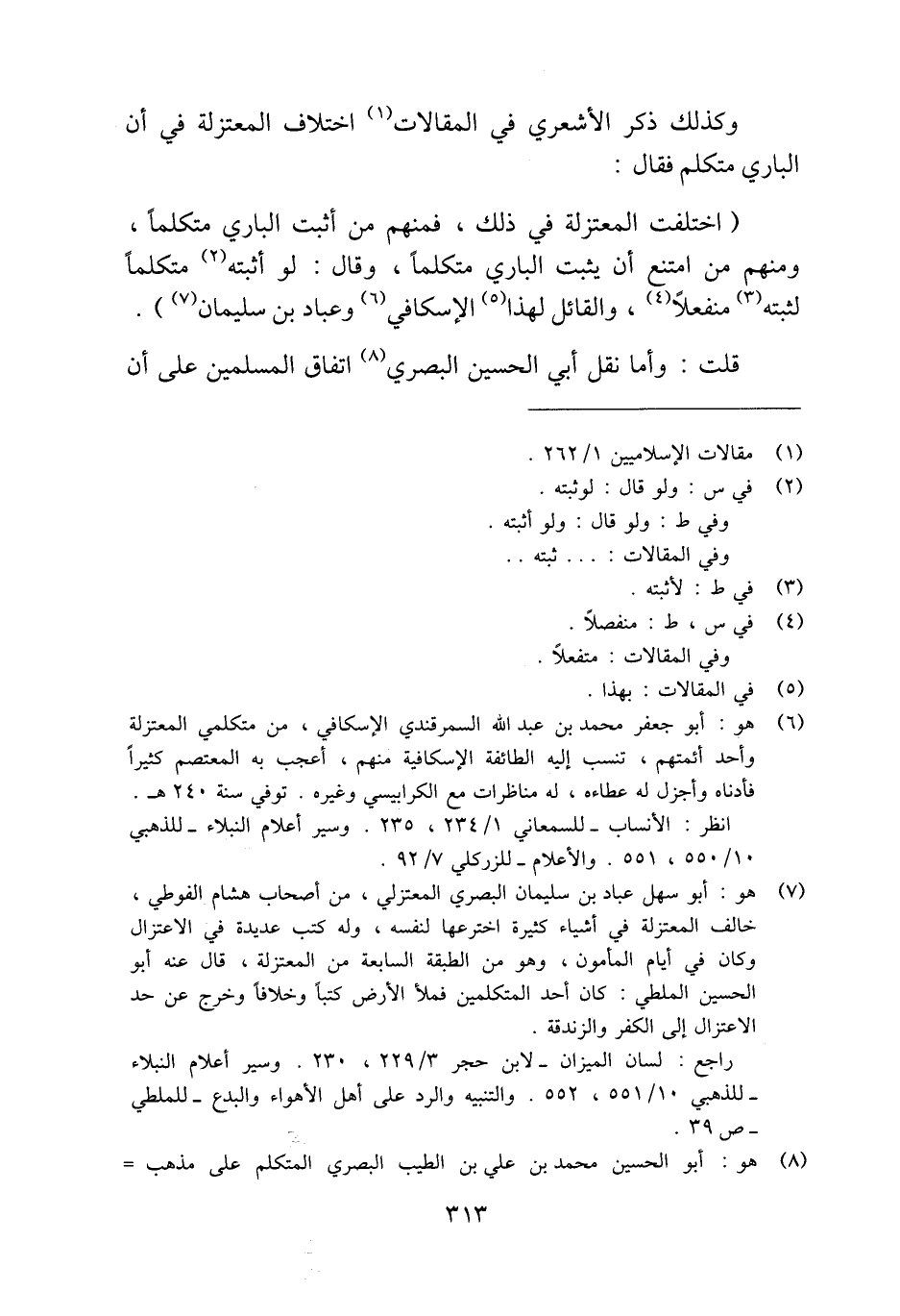 (¬6) هو: أبو جعفر محمد بن عبد الله السمرقندي الإسكافي، من متكلمي المعتزلة وأحد أئمتهم، تنسب إليه الطائفة الإسكافية منهم، أعجب به المعتصم كثيرًا فأدناه وأجزل له عطاءه، له مناظرات مع الكرابيسي وغيره. توفي سنة 240 هـ. انظر: الأنساب -للسمعاني 1/ 234، 235. وسير أعلام النبلاء -للذهبي 10/ 550، 551. والأعلام -للزركلي 7/ 92.