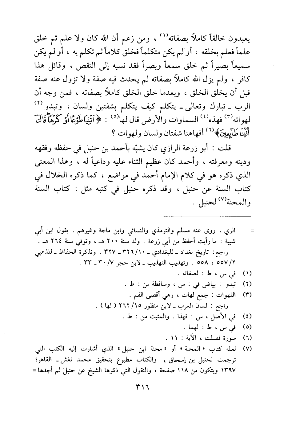 قلت: أبو زرعة الرازي كان يشبّه بأحمد بن حنبل، في حفظه وفقهه ودينه ومعرفته، وأحمد كان عظيم الثناء عليه وداعيًا له، وهذا المعنى الذي ذكره هو في كلام الإمام أحمد في مواضع، كما ذكره الخلال في كتاب السنة عن حنبل، وقد ذكره حنبل في كتبه مثل: كتاب السنة والمحنة (¬7) لحنبل.