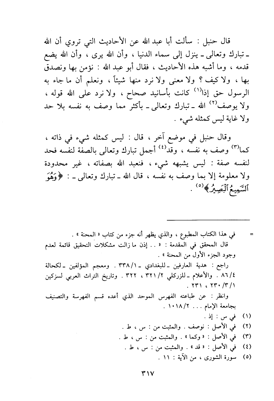 = في هذا الكتاب المطبوع، والذي يظهر أنه جزء من كتاب "المحنة".