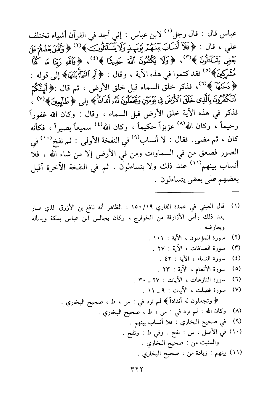 (¬9) في صحيح البخاري: فلا أنساب بينهم.