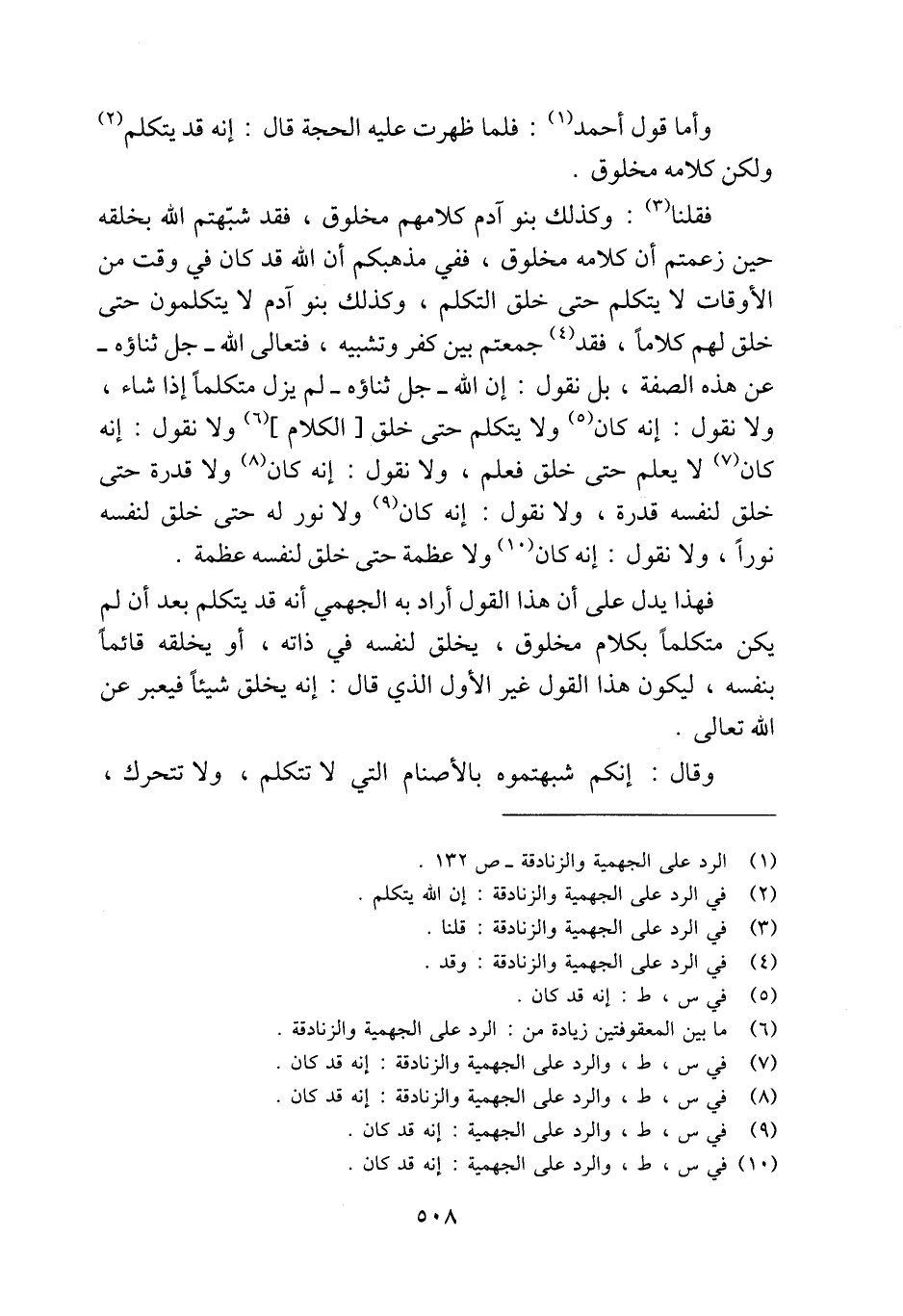 (¬4) في الرد على الجهمية والزنادقة: وقد.