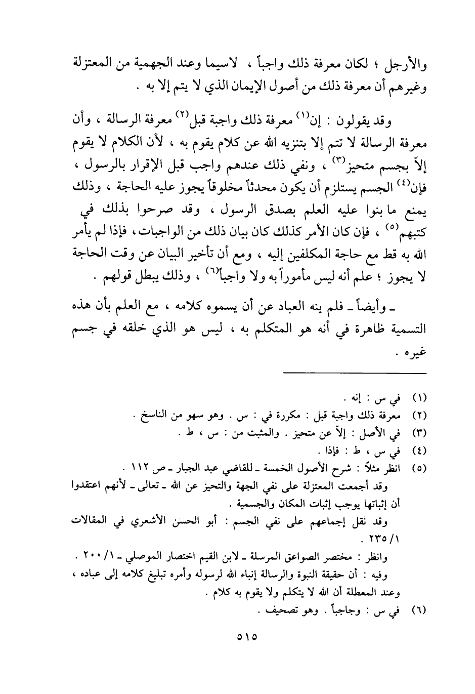 (¬5) انظر مثلًا: شرح الأصول الخمسة -للقاضي عبد الجبار- ص: 112.