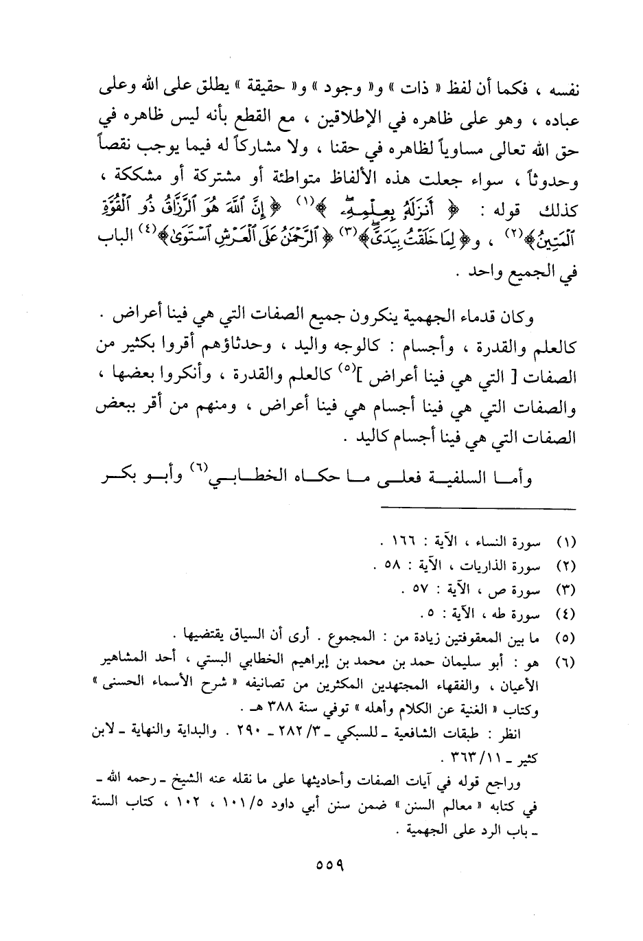 وراجع قوله في آيات الصفات وأحاديثها على ما نقله عنه الشيخ -رحمه الله- في كتابه "معالم السنن" ضمن سنن أبي داود 5/ 101، 102، كتاب السنة - باب الرد على الجهمية.